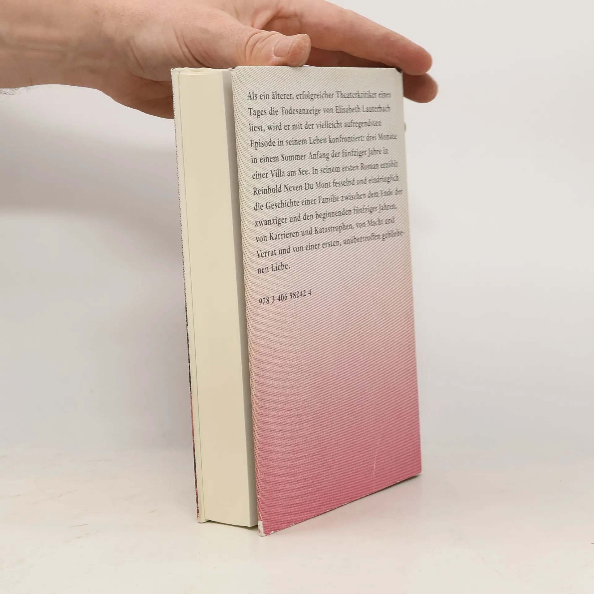 Als ein älterer, erfolgreicher Theaterkritiker eines Tages die Todesanzeige von Elisabeth Lauterbach liest und ihr Begräbnis besucht, wird er mit der vielleicht aufregendsten Episode in seinem Leben konfrontiert: drei Monate in einem Sommer Anfang der fünfziger Jahre in einer Villa am Starnberger See. Er, Robert, Student an der Münchner Universität, sollte die Bibliothek des verstorbenen Kunsthändlers Otto Lauterbach ordnen. Seine Tochter Elisabeth leitet den großbürgerlichen Haushalt, ihren Mann, einen Düsseldorfer Fabrikanten, hat sie vor die Tür gesetzt, energisch versucht sie, nach den Verwüstungen des Krieges in den veränderten Verhältnissen der Nachkriegszeit Fuß zu fassen. Robert kommt als freundlicher und genauer Beobachter in diesen Haushalt, gewinnt bald die Zuneigung und das Vertrauen einiger Familienmitglieder und Bewohner und wird Schritt für Schritt in die Geschichte und die Geheimnisse der Familie eingeweiht. Und noch eine weitere Initiation wartet auf ihn, das überraschendste Erlebnis seines Lebens. In seinem ersten Roman erzählt Reinhold Neven Du Mont anschaulich und präzise, fesselnd und eindringlich die Geschichte einer Familie zwischen dem Ende der zwanziger und den beginnenden fünfziger Jahren, von Karrieren und Katastrophen, von Macht und Verrat und von einer ersten, unübertroffen gebliebenen Liebe.