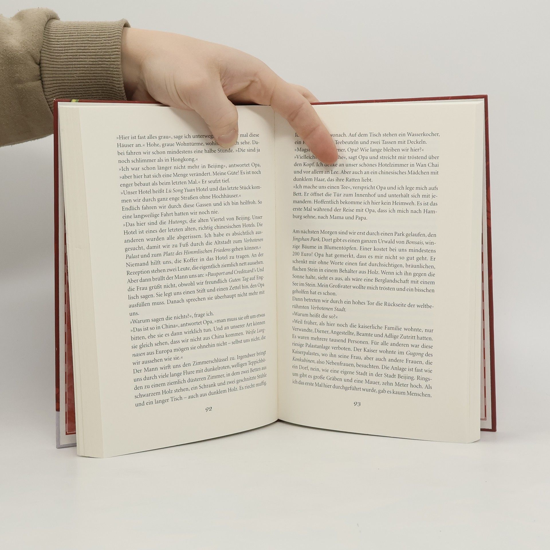 Als der 12jährige Siong mit lautem Knall irgendwo in Hong Kong im stockfinsteren Keller eines Hotels landet, ahnt er, dass diese Reise durch China ziemlich aufregend wird. Neben seinem unternehmungslustigen Opa sind auch seine Freunde Lee und die (nicht immer) reizende Litju dabei. Zusammen reisen sie von der gigantischen Wolkenkratzer-Stadt weiter nach Peking, Shanghai, zur Chinesischen Mauer, Chengde und zur Insel Hainan. Siong ist gefesselt von dieser vielseitigen, schwer zugänglichen Kultur mit ihrer bewegten Geschichte.