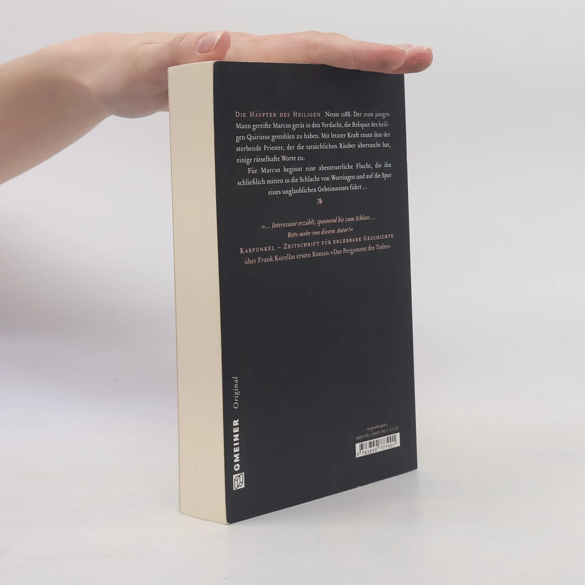 Neuss 1288. Der zum jungen Mann gereifte Marcus gerät in den Verdacht, die Reliquie des heiligen Quirinus gestohlen zu haben. Mit letzter Kraft raunt ihm der sterbende Priester, der die tatsächlichen Räuber überrascht hat, einige rätselhafte Worte zu. Für Marcus beginnt eine abenteuerliche Flucht, die ihn schließlich mitten in die Schlacht von Worringen und auf die Spur eines unglaublichen Geheimnisses führt …
