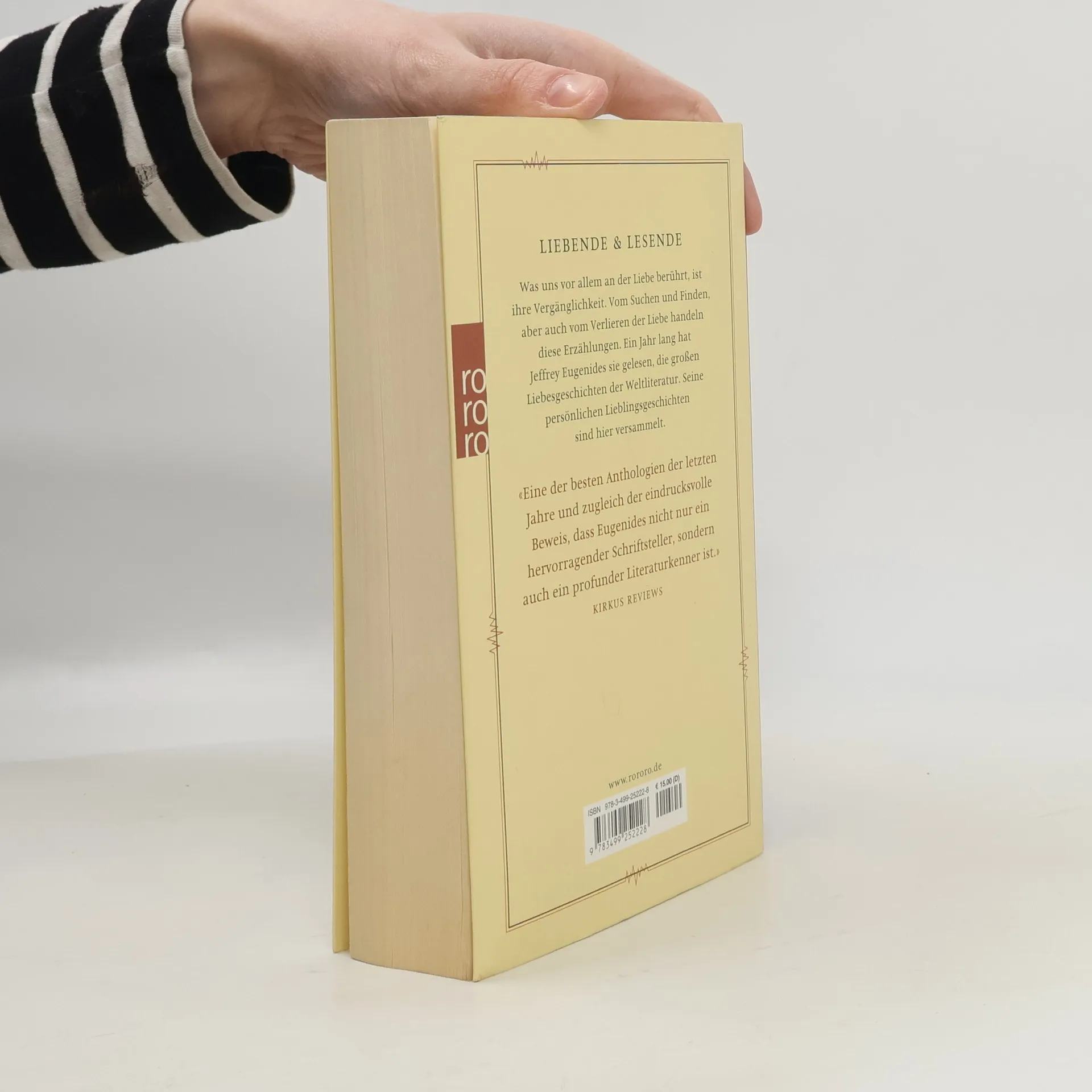 Liebende & Lesende Was uns vor allem an der Liebe berührt, ist ihre Vergänglichkeit. Vom Suchen und Finden, aber auch vom Verlieren der Liebe handeln diese Erzählungen. Ein Jahr lang hat Jeffrey Eugenides sie gelesen, die großen Liebesgeschichten der Weltliteratur. Seine persönlichen Lieblingsgeschichten sind hier versammelt. „Eine der besten Anthologien der letzten Jahre, und zugleich der eindrucksvolle Beweis, dass Eugenides nicht nur ein hervorragender Schriftsteller, sondern auch ein profunder Literaturkenner ist.“ (Kirkus Reviews)