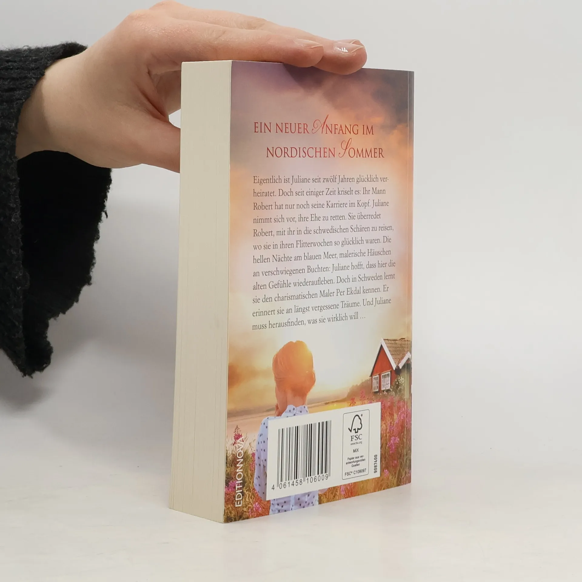 Ein neuer Anfang im nordischen Sommer Eigentlich ist Juliane seit zwölf Jahren glücklich verheiratet. Doch seit einiger Zeit kriselt es: Ihr Mann Robert hat nur noch seine Karriere im Kopf. Juliane nimmt sich vor, ihre Ehe zu retten. Sie überredet Robert, mit ihr in die schwedischen Schären zu reisen, wo sie in ihren Flitterwochen so glücklich waren. Die hellen Nächte am blauen Meer, malerische Häuschen an verschwiegenen Buchten: Juliane hofft, dass hier die alten Gefühle wieder aufleben. Doch in Schweden lernt sie den charismatischen Maler Per Ekdal kennen. Er erinnert sie an längst vergessene Träume. Und Juliane muss herausfinden, was sie wirklich will …