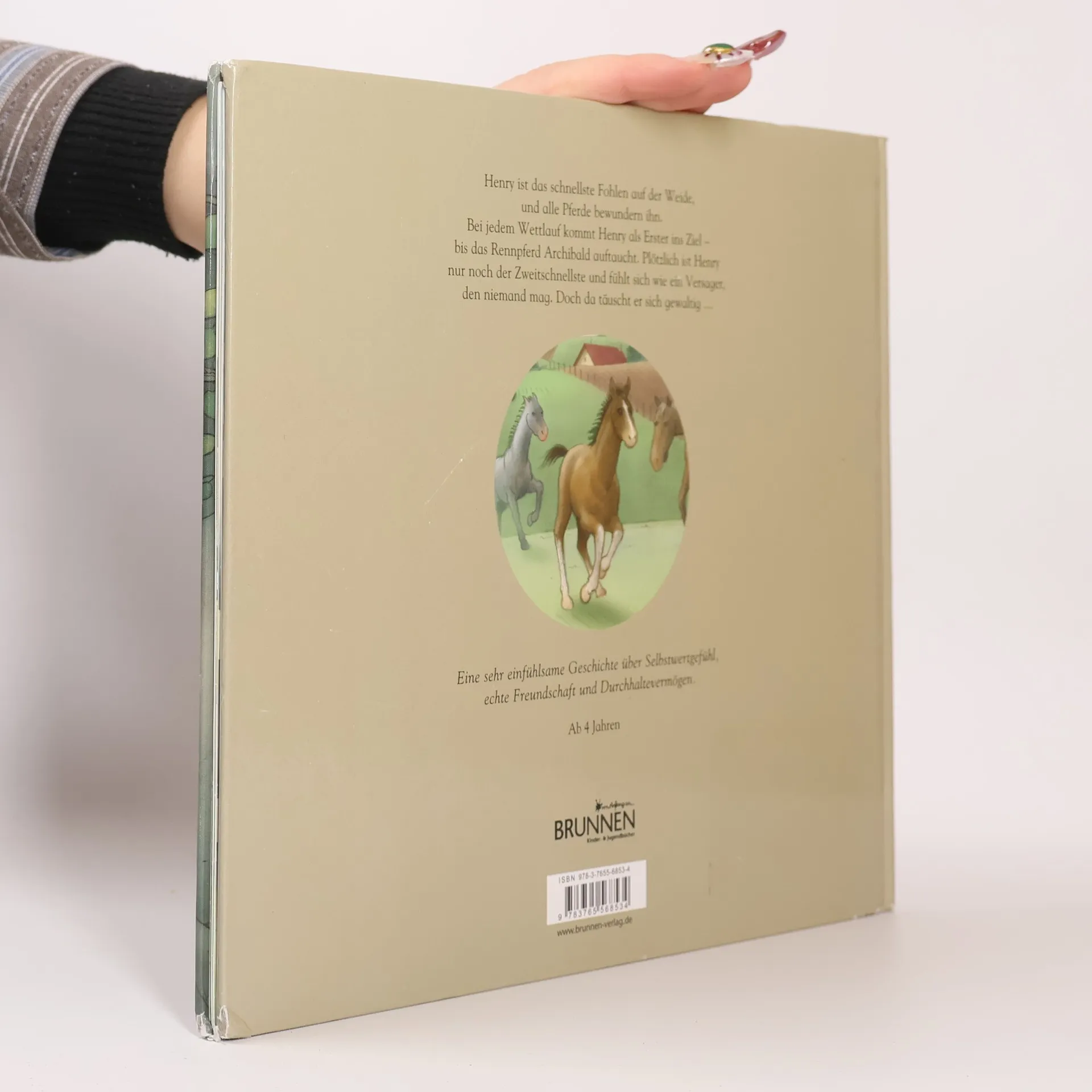 Henry ist das schnellste Fohlen auf der Weide, und alle Pferde bewundern ihn. Bei jedem Wettlauf kommt Henry als Erster ins Ziel – bis das Rennpferd Archibald auftaucht. Plötzlich ist Henry nur noch der Zweitschnellste und fühlt sich wie ein Versager, den niemand mag. Doch da täuscht er sich gewaltig … Eine sehr eindringliche Geschichte über Selbstwertgefühl, echte Freundschaft und Durchhaltevermögen. Zeigt die Gefahren von Selbstüberschätzung und Minderwertigkeitsgefühlen auf und motiviert zum Üben.