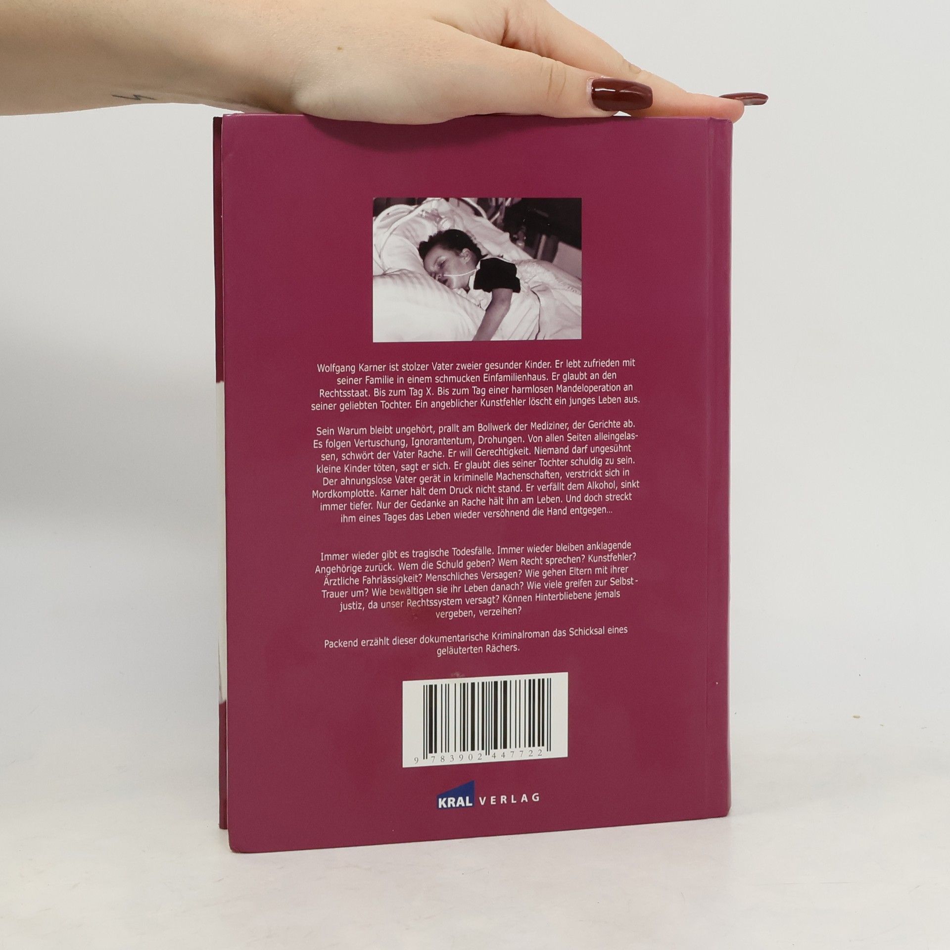 K ist stolzer Vater zweier gesunder Kinder und lebt zufrieden mit seiner Familie in einem Einfamilienhaus. Sein Vertrauen in den Rechtsstaat wird jedoch am Tag einer harmlosen Mandeloperation seiner Tochter erschüttert, als ein angeblicher Kunstfehler das Leben des Kindes auslöscht. Sein verzweifeltes "Warum" bleibt ungehört und prallt an der Mauer der Mediziner und Gerichte ab. Es folgen Vertuschungen, Ignoranz und Drohungen, während er von allen Seiten alleingelassen wird. Getrieben von der Trauer und dem Bedürfnis nach Gerechtigkeit, schwört er Rache und gerät in kriminelle Machenschaften. Verstrickt in Mordkomplotte, kann K dem Druck nicht standhalten und verfällt dem Alkohol. Der Gedanke an Rache wird zu seinem einzigen Lebensinhalt. Immer wieder gibt es tragische Todesfälle, und die Hinterbliebenen stehen ratlos da. Fragen nach Schuld und Verantwortung bleiben unbeantwortet: Kunstfehler, ärztliche Fahrlässigkeit oder menschliches Versagen? Wie gehen Eltern mit ihrer Trauer um? Wie bewältigen sie ihr Leben danach? Der Roman beleuchtet die dunklen Seiten des Verlusts und die verzweifelten Versuche der Hinterbliebenen, Gerechtigkeit zu finden, während das Rechtssystem versagt. Können sie jemals vergeben?