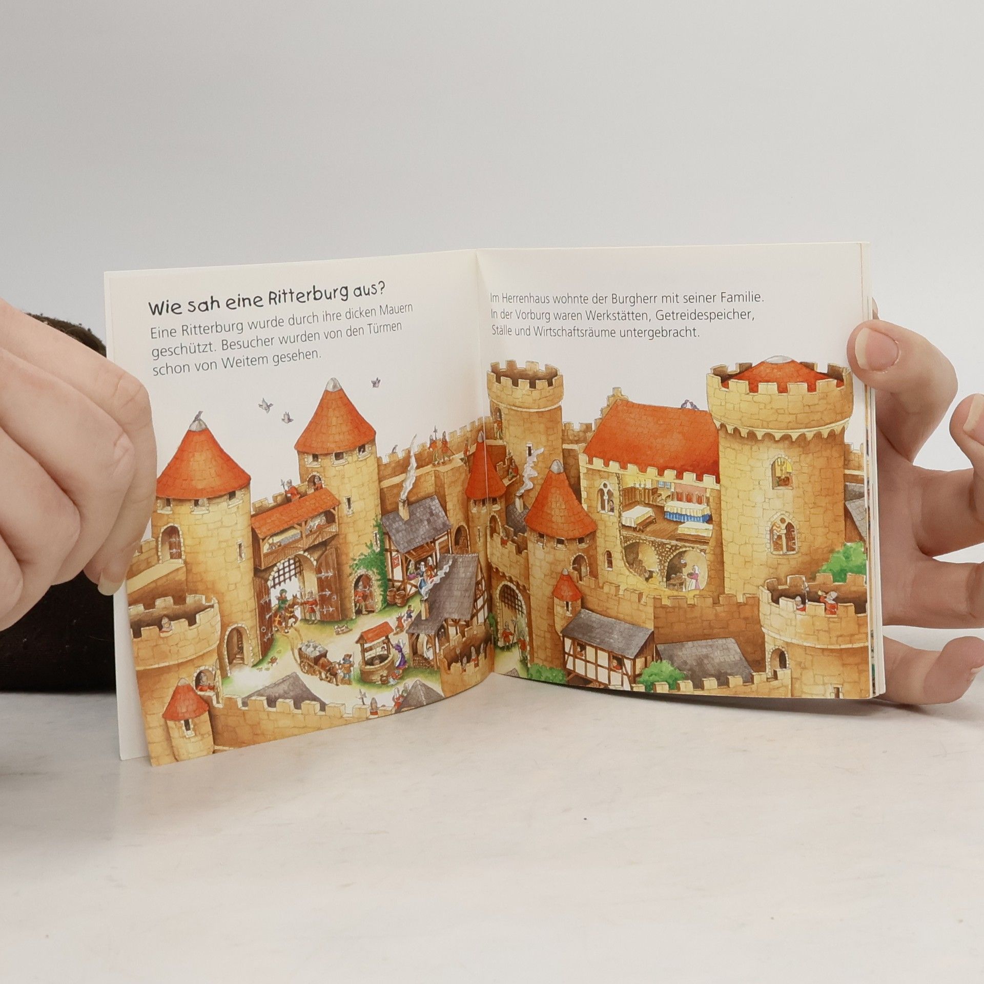 Wie machen Ritter Pipi? Wer wohnt alles auf der Burg? Wie fühlt sich eigentlich ein Kettenhemd an? Dieses Buch gibt Antworten auf diese Fragen und zahlreiche Spieleffekte laden Kinder ein, das Ritterleben selbst zu entdecken. Weitere Produktinformationen: Wer wohnt auf einer Burg? Und was passiert auf einem Turnier? Über eine Zugbrücke wird man ins Innere der Burg geführt und später sogar in die Wohn- und Schlafstube von König Bodo und seiner Familie. Die königlichen Familienmitglieder gehen ganz typischen Beschäftigungen aus dieser Zeit nach. Die originellen Klappen bringen Leben in die Szenen. Und wer möchte nicht auch wissen, wie sich ein Ritterhemd anfühlt? (Quelle: Homepage des Verlags).