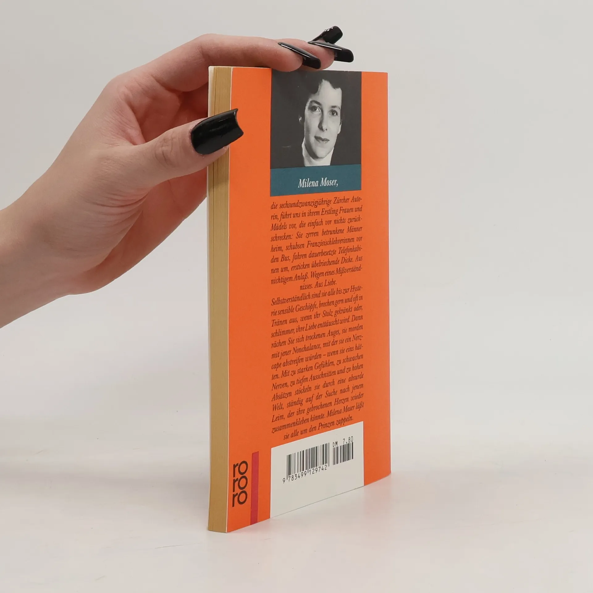 Milena Moser führt uns Frauen und Mädels vor, die einfach vor nichts zurü Sie zerren betrunkene Männer heim, schubsen Französischlehrerinnen vor den Bus, fahren dauerbesetzte Telefonkabinen um, ersticken übelriechende Dicke. Aus nichtigem Anlaß. Wegen eines Mißverständnisses. Aus Liebe.Selbstverständlich sind sie alle bis zur Hysterie sensible Geschöpfe, brechen gern und oft in Tränen aus, wenn ihr Stolz gekränkt oder, schlimmer, ihre Liebe enttäuscht wird. Dann rächen Sie sich trockenen Auges, sie morden mit jener Nonchalance, mit der sie ein Nerzcape abstreifen würden – wenn sie eins hätten. Mit zu starken Gefühlen, zu schwachen Nerven, zu tiefen Ausschnitten und zu hohen Absätzen stöckeln sie durch eine absurde Welt, ständig auf der Suche nach jenem Leim, der ihre gebrochenen Herzen wieder zusammenkleben könnte. Milena Moser läßt sie alle um den Prinzen zappeln.