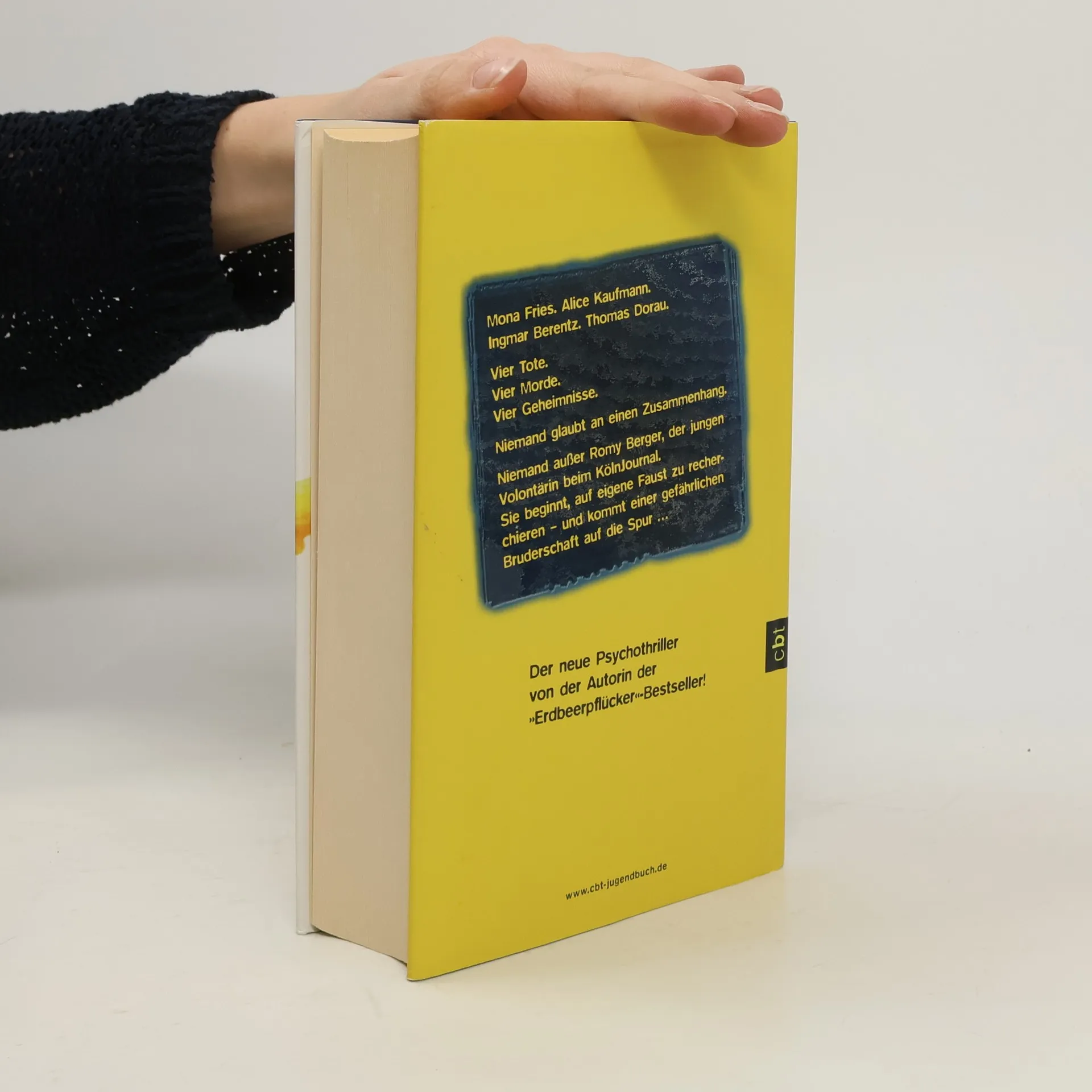 Die achtzehnjährige Romy hat ihren Traumjob als Volontärin bei einer Kölner Zeitung ergattert. Als die Leiche eines jungen Mannes aus einem See geborgen wird und kurz darauf ein stark abgemagertes Mädchen gefunden wird, glaubt niemand an einen Zusammenhang zu drei anderen Mordfällen der letzten Monate – außer Romy und dem neu versetzten Kommissar Bert Melzig. Romy, die Tochter von Aussteigereltern, lebt in einem Szenehaus in der Kölner Südstadt und hat sich ihren Platz beim „KölnJournal“ erkämpft, wo ihr Chef viel von ihr hält. Die unterschiedlichen DNA-Spuren der beiden neuen Todesfälle lassen die Ermittler glauben, dass sie nicht mit den früheren Morden verbunden sind. Vier Kommissare sind mit den Fällen betraut, wobei Melzig für den vierten zuständig ist. Doch Romy hat ein Gespür dafür, dass es einen Zusammenhang gibt. Sie überzeugt ihren Chef, Nachforschungen für die Zeitung anstellen zu dürfen, und stößt dabei auf eine gefährliche Bruderschaft. Der Psychothriller ist brillant erzählt, atemberaubend spannend und bietet eine dichte Atmosphäre mit faszinierenden Figuren.