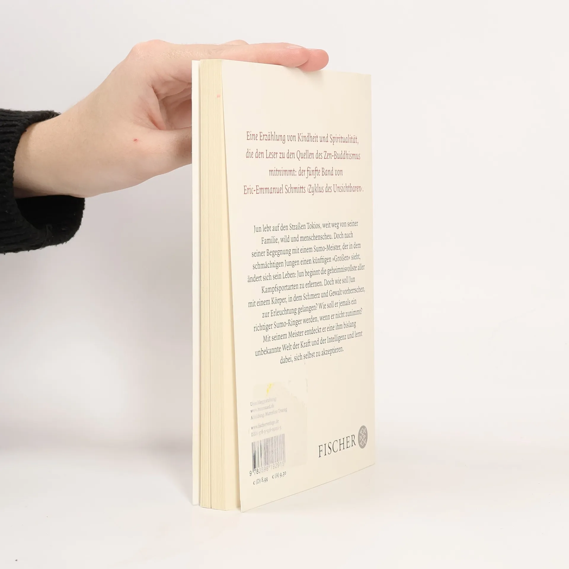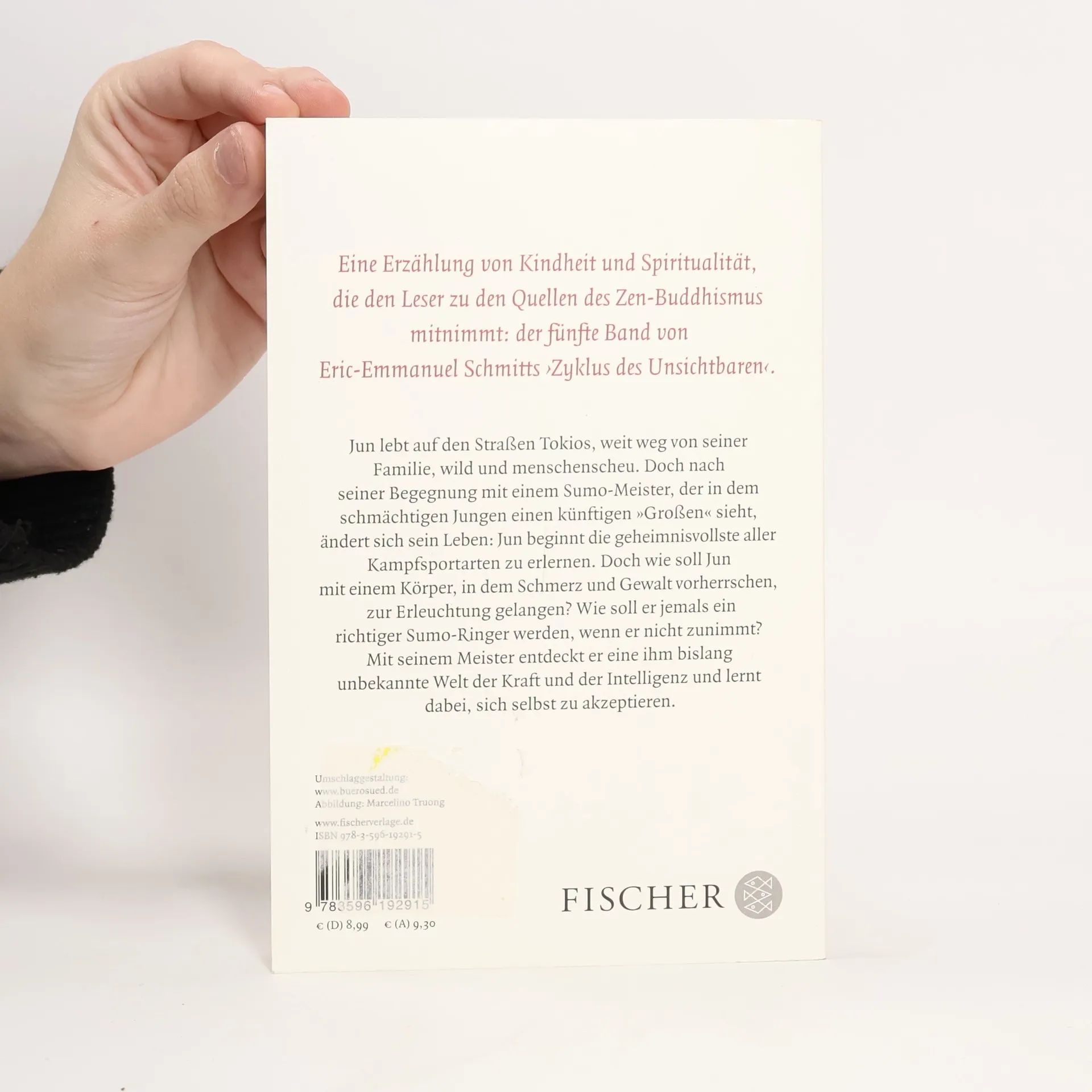 Jun lebt auf den Straßen Tokios, weit weg von seiner Familie, wild und menschenscheu. Doch nach seiner Begegnung mit einem Sumo-Meister, der in dem schmächtigen Jungen einen künftigen »Großen« sieht, ändert sich sein Leben: Jun beginnt die geheimnisvollste aller Kampfsportarten zu erlernen. Doch wie soll Jun mit einem Körper, in dem Schmerz und Gewalt vorherrschen, zur Erleuchtung gelangen? Wie soll er jemals ein richtiger Sumo-Ringer werden, wenn er nicht zunimmt? Mit seinem Meister entdeckt er eine ihm bislang unbekannte Welt der Kraft und der Intelligenz und lernt dabei, sich selbst zu akzeptieren. Eine Erzählung von Kindheit und Spiritualität, die den Leser zu den Quellen des Zen-Buddhismus mitnimmt: der fünfte Band von Eric-Emmanuel Schmitts ›Zyklus des Unsichtbaren‹.