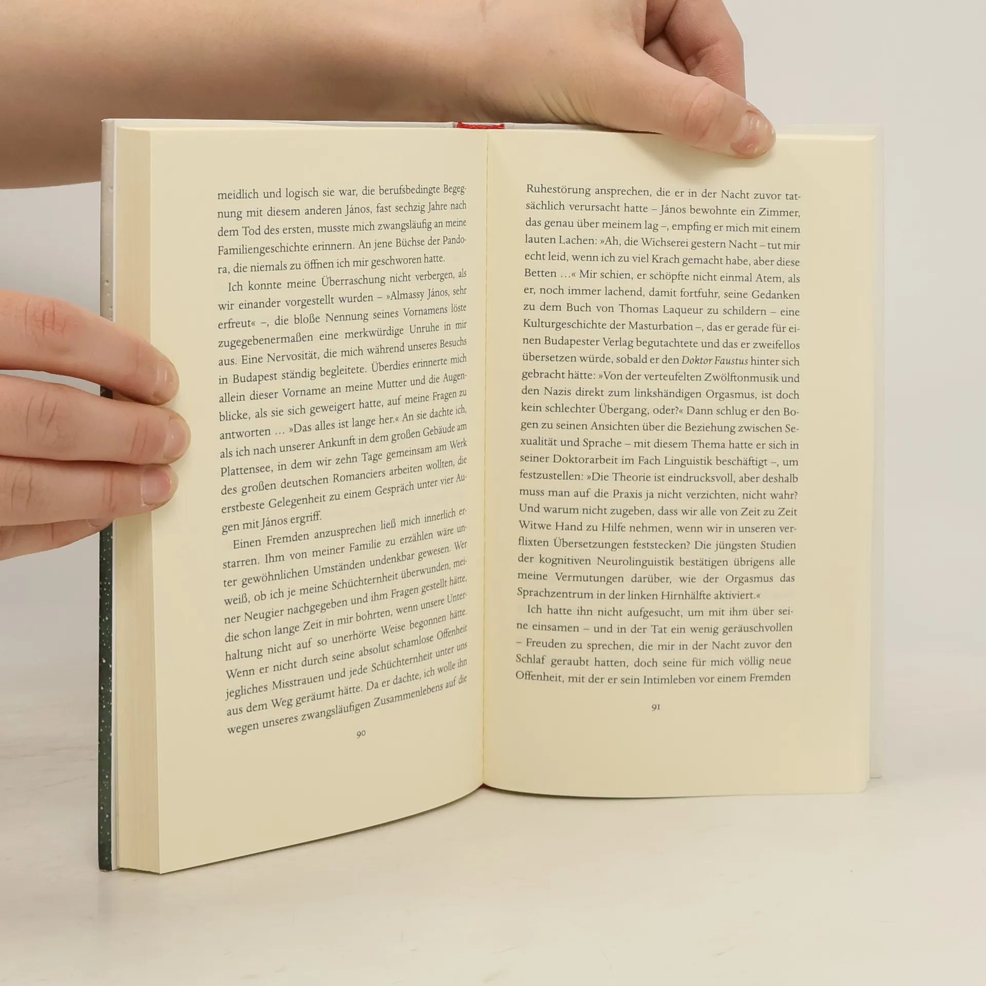 Gabriel, ein etwa dreißigjähriger Übersetzer, wohnhaft in London, durchlebt eine Sinnkrise. Aufgewachsen in der französischen Provinz als Sohn einer ungarisch-jüdischen Einwandererfamilie, ist er dem stummen Zuhause entflohen: stumm, was die Herkunft, das Schicksal der Vorfahren, aber auch, was den Unfalltod der geliebten Schwester betrifft, der sein und der Eltern Leben urplötzlich verdunkelt hat. In London heiratet er eine lebenslustige junge Frau, der er mit Erfolg Gesprächigkeit und Aufgeschlossenheit vorspielt. Sie hat ihn mit ihrem Lachen, das ihm eine hellere Zukunft verspricht, in Bann geschlagen. Ein Verlag beauftragt Gabriel mit der Neuübersetzung von Thomas Manns Doktor Faustus. Laura wird schwanger. Das Paar richtet sich auf Nachwuchs ein. Alles läßt sich gut an. Da fährt er zu einem Übersetzerkolloquium nach Budapest. Auf dem jüdischen Friedhof entdeckt er die Gräber seiner Familie. In den Dämpfen des Király-Bads begegnet er – sich selbst? Die totgeschwiegene Vergangenheit greift nach ihm. Sie stellt alles in Frage. »Steht es mir noch zu, mein Leben gegen ein anderes einzutauschen? Ein neues Tor zu öffnen und einen anderen Weg zu finden?«