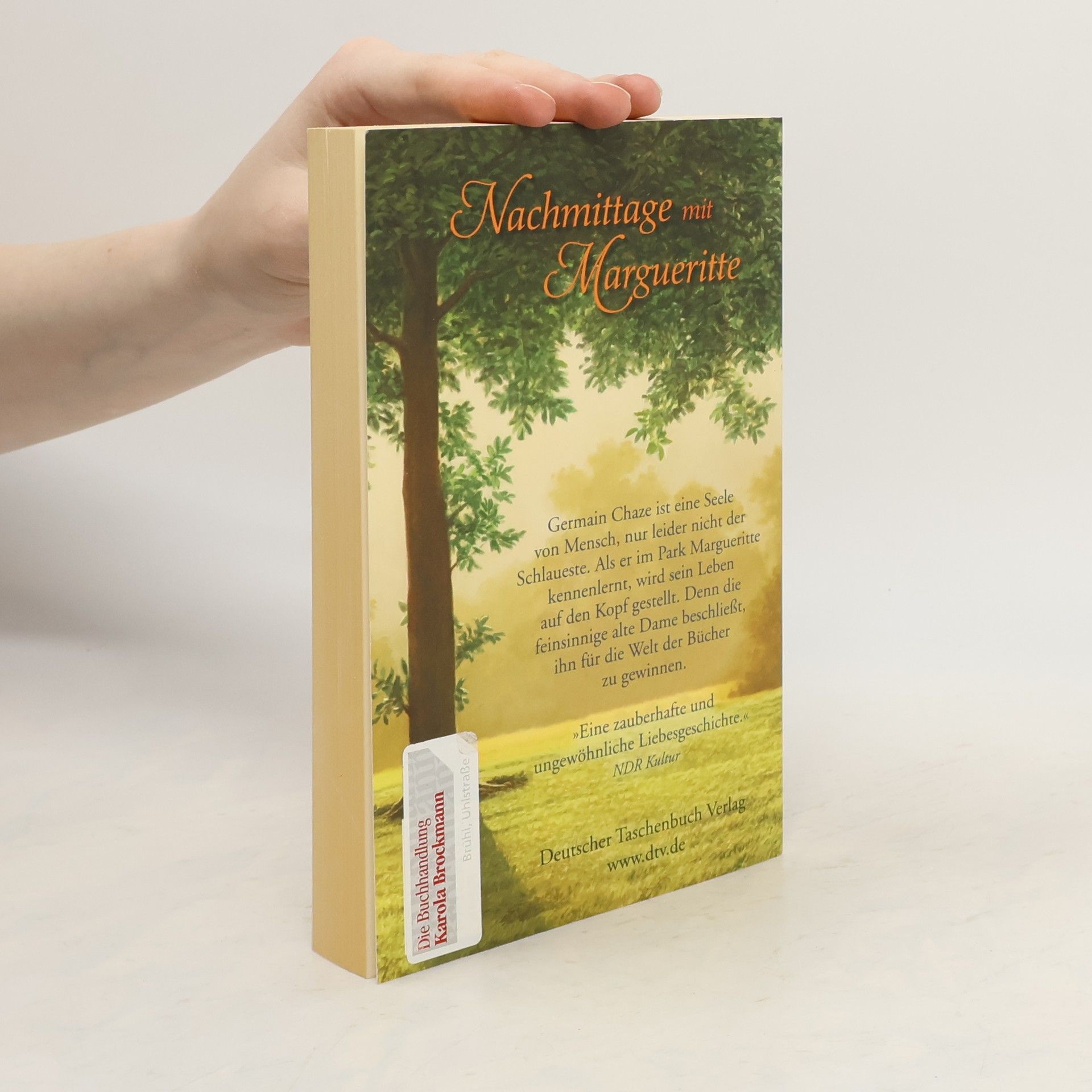 Nachmittage mit Margueritte Mit Mitte 40 und ohne festen Job haust Germain in einem alten Wohnwagen, schnitzt Holzfiguren, baut Gemüse an und trifft sich ab und zu mit Annette – ob es Liebe ist, kann er jedoch nicht sagen, denn die hat er im Leben noch nie erfahren. Bis er eines Tages im Park die zierliche Margueritte kennen lernt, die dort, genau wie er, die Tauben zählt. Obwohl sie unterschiedlicher nicht sein könnten, sind die beiden bald ein Herz und eine Seele. Die lebenskluge alte Dame ist zudem eine passionierte Leserin, und als sie dem ungeschliffenen Hünen vorzulesen beginnt, eröffnet sich Germain eine völlig neue Welt.
