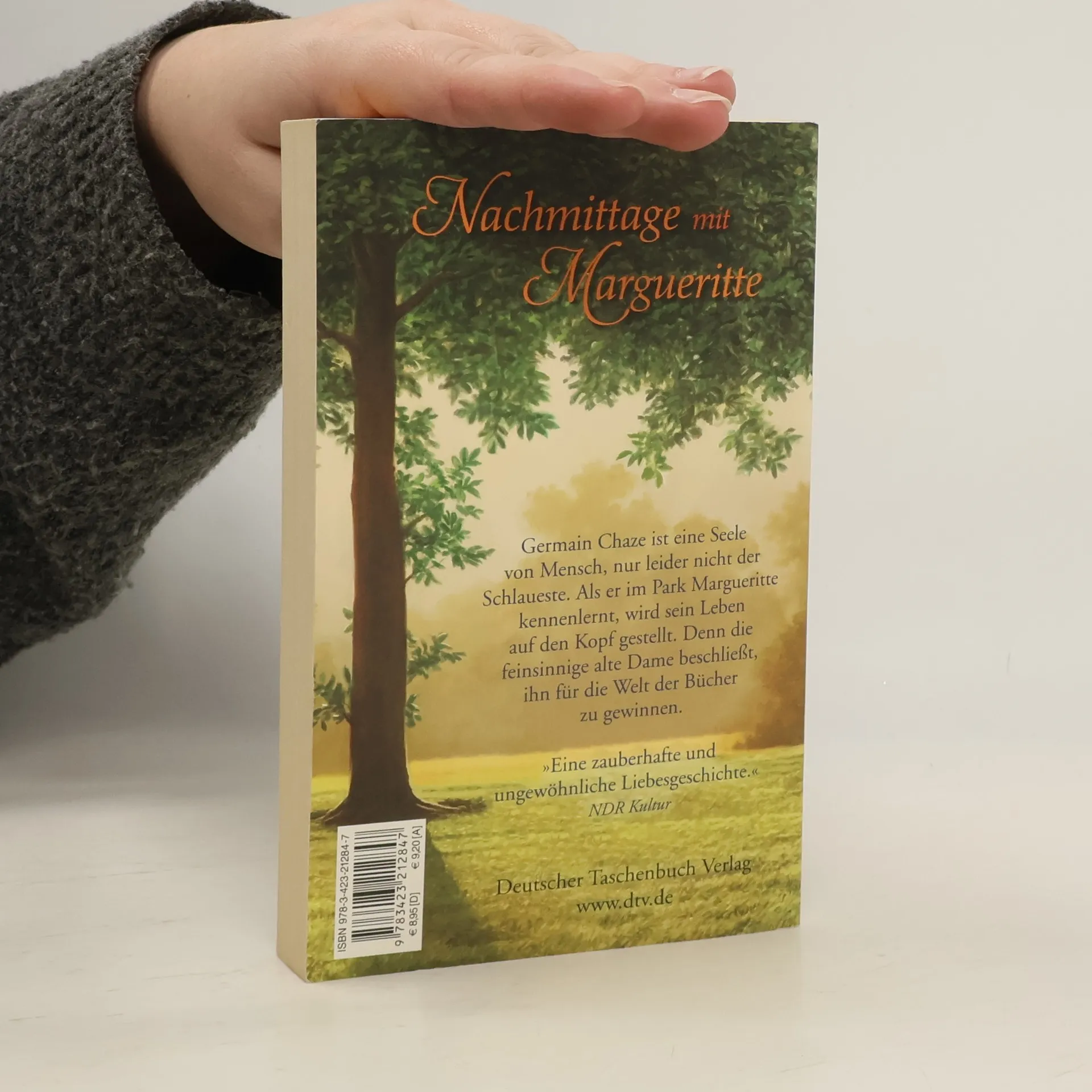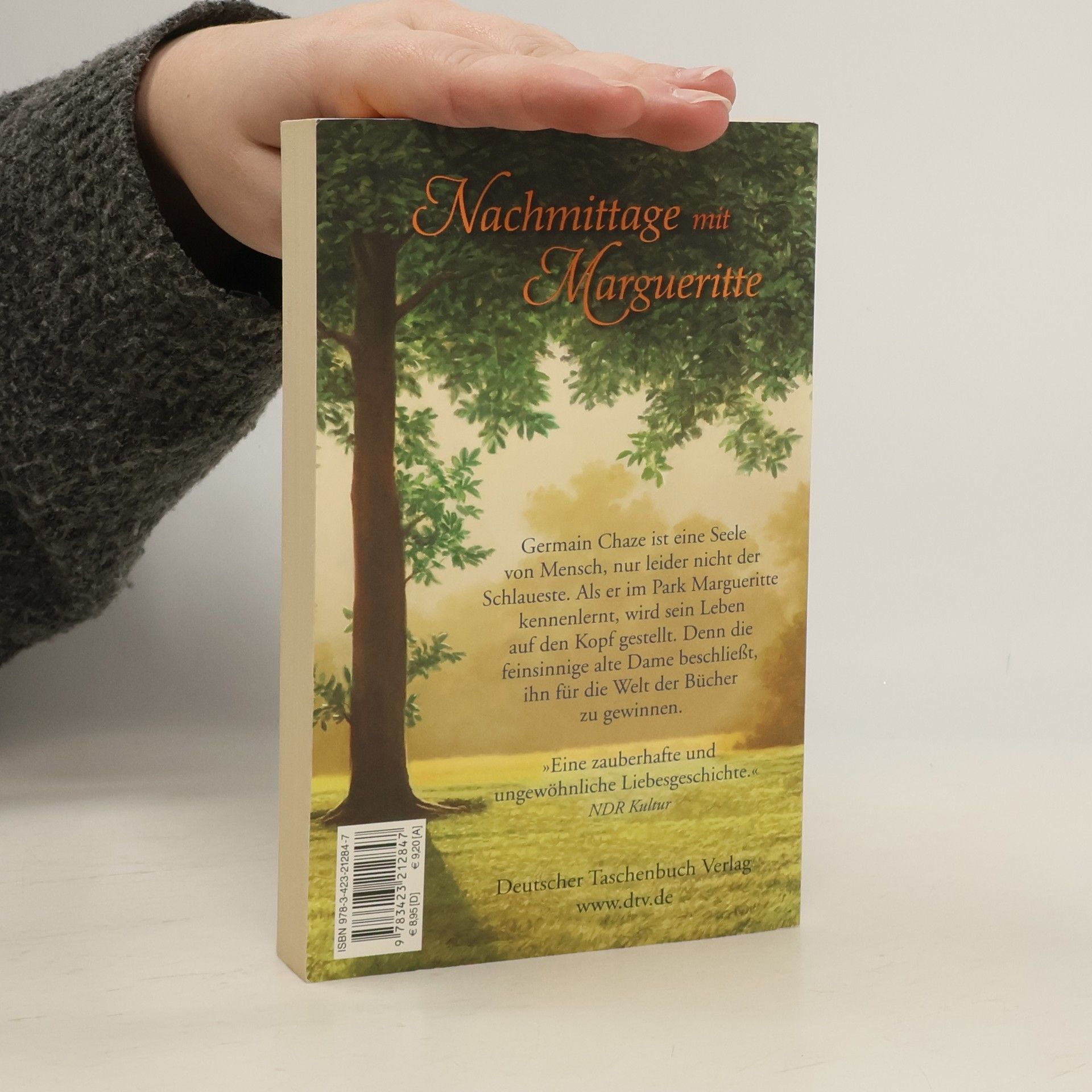 Nachmittage mit Margueritte Mit Mitte 40 und ohne festen Job haust Germain in einem alten Wohnwagen, schnitzt Holzfiguren, baut Gemüse an und trifft sich ab und zu mit Annette – ob es Liebe ist, kann er jedoch nicht sagen, denn die hat er im Leben noch nie erfahren. Bis er eines Tages im Park die zierliche Margueritte kennen lernt, die dort, genau wie er, die Tauben zählt. Obwohl sie unterschiedlicher nicht sein könnten, sind die beiden bald ein Herz und eine Seele. Die lebenskluge alte Dame ist zudem eine passionierte Leserin, und als sie dem ungeschliffenen Hünen vorzulesen beginnt, eröffnet sich Germain eine völlig neue Welt.