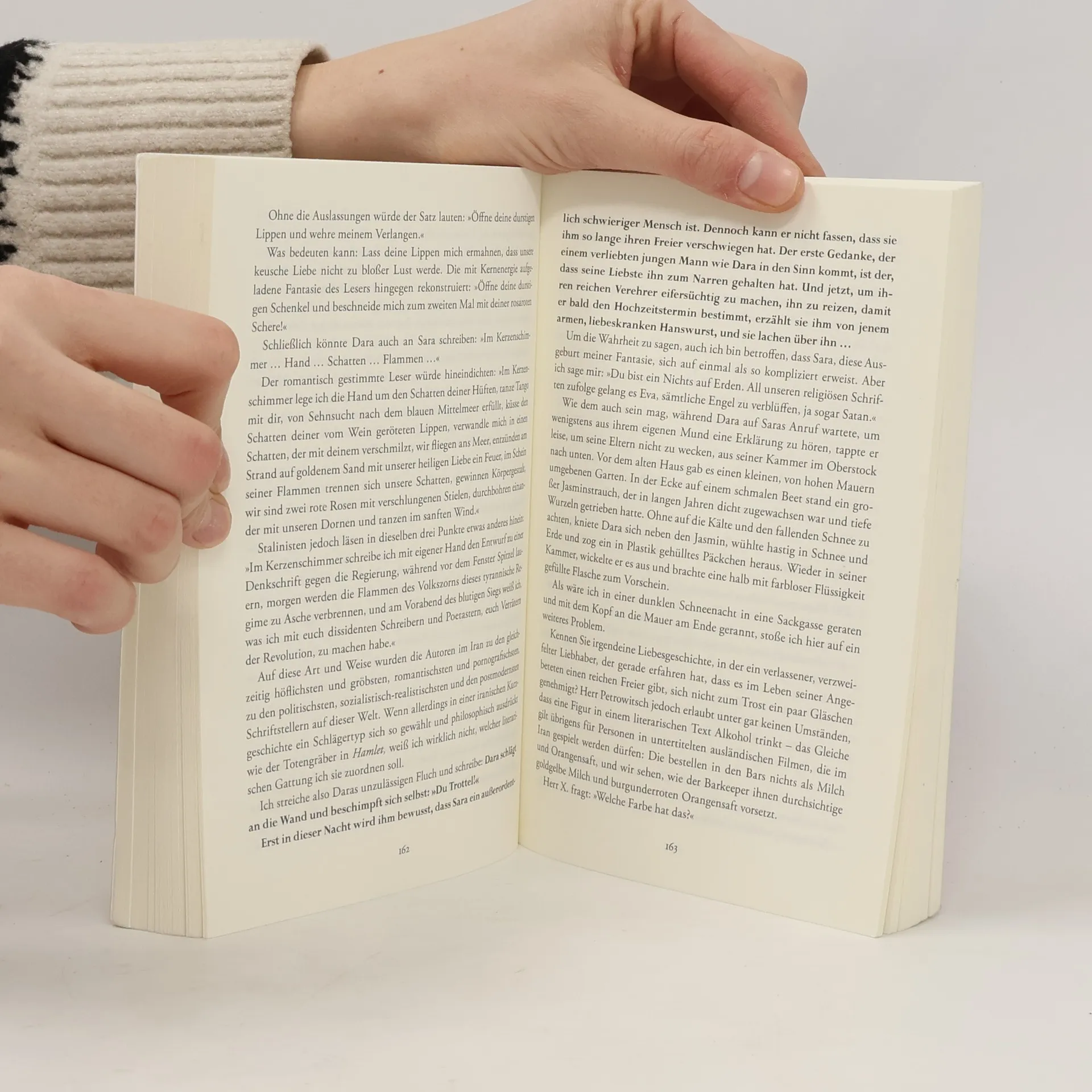 Ein iranischer Schriftsteller ist es leid, immer nur düstere Romane mit tragischem Ausgang zu schreiben. Also beginnt er eine Liebesgeschichte ein Projekt mit Tücken. Wie erzählen, wenn es den Liebenden verboten ist, sich allein zu begegnen, sich in die Augen zu schauen? Wie ein mächtiger Schatten wacht Herr Petrowitsch, der Zensor, über jedes Wort und liest sogar die Ge-danken des Schriftstellers zwischen den Zeilen. Also müssen Sara und Dara, das junge Paar aus Teheran, tausend Listen und Tricks ersinnen, um sich zu finden.