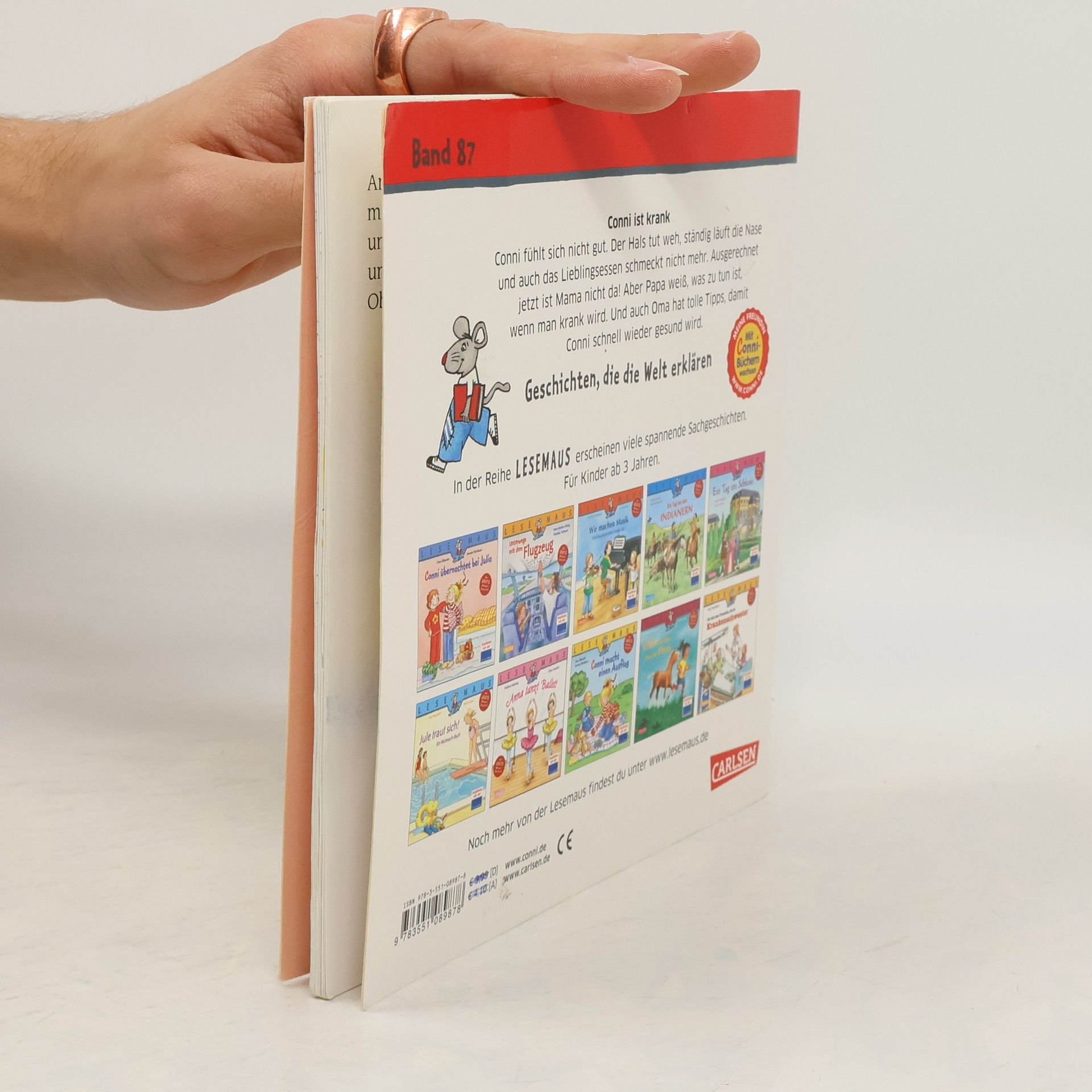 *** Gute Besserung, Conni! *** Conni fühlt sich nicht gut. Der Hals tut weh, ständig läuft die Nase und auch das Lieblingsessen schmeckt ihr nicht mehr. Ausgerechnet jetzt ist Mama nicht da! Zum Glück weiß Papa, was zu tun ist, wenn man krank wird. Und auch Oma hat tolle Tipps, damit Conni schnell wieder gesund wird. *** LESEMAUS – Geschichten, die die Welt erklären! *** Die Bilderbücher für Kinder ab 3 Jahren sind ideal zum gemeinsamen Anschauen und Vorlesen. Verständliche Texte und hochwertige Illustrationen vermitteln erstes Sachwissen zu wichtigen Themen aus dem Kinderalltag. Empfohlen von der Stiftung Lesen.