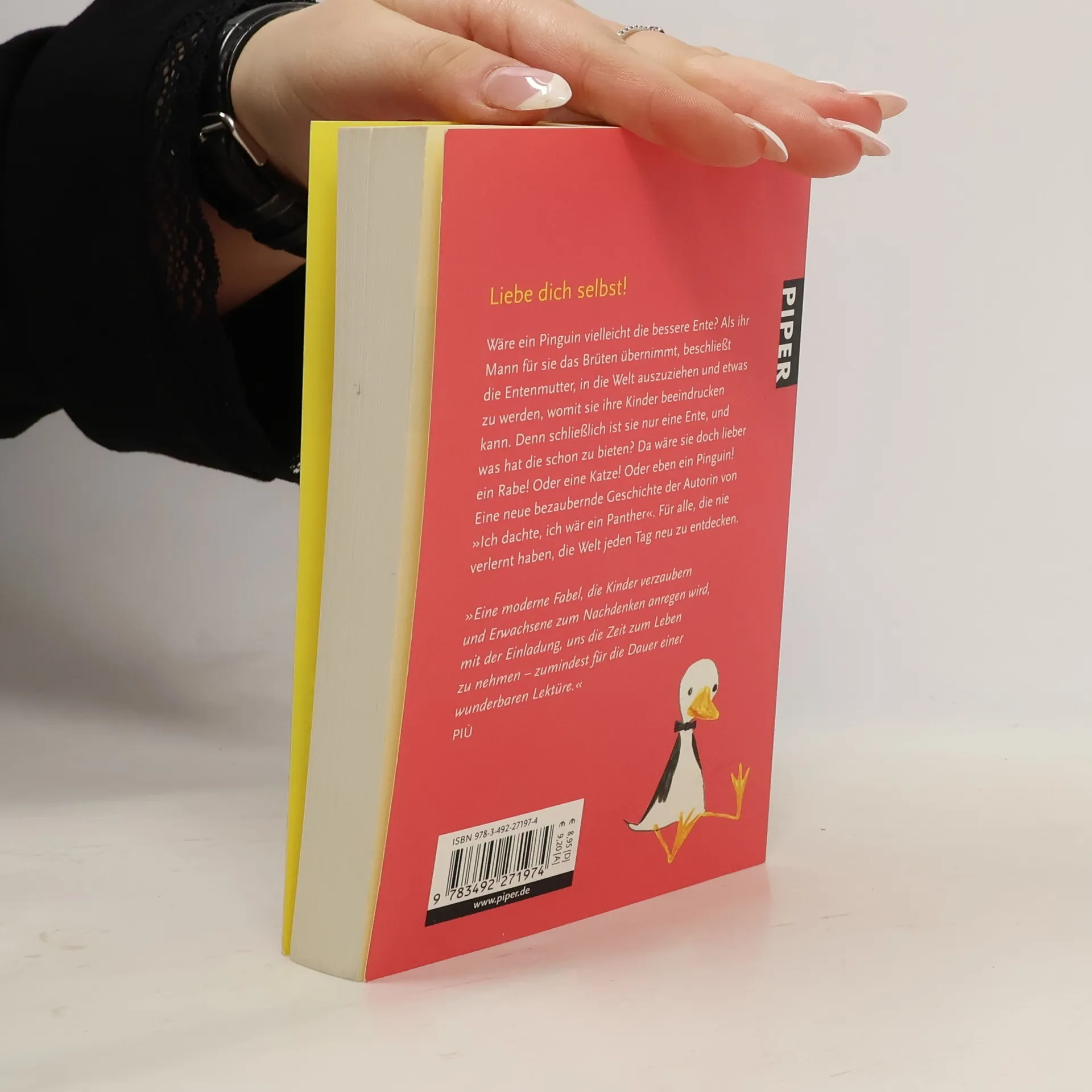 Wäre ein Pinguin vielleicht die bessere Ente? Als ihr Mann für sie das Brüten übernimmt, beschließt die Entenmutter, in die Welt auszuziehen und etwas zu werden, womit sie ihre Kinder beeindrucken kann. Denn schließlich ist sie nur eine Ente, und was hat die schon zu bieten? Da wäre sie doch lieber ein Rabe! Oder eine Katze! Ober eben ein Pinguin! Eine neue bezaubernde Geschichte der Autorin von 'Ich dachte, ich wär ein Panther'. Für alle, die nie verlernt haben, die Welt jeden Tag neu zu entdecken.