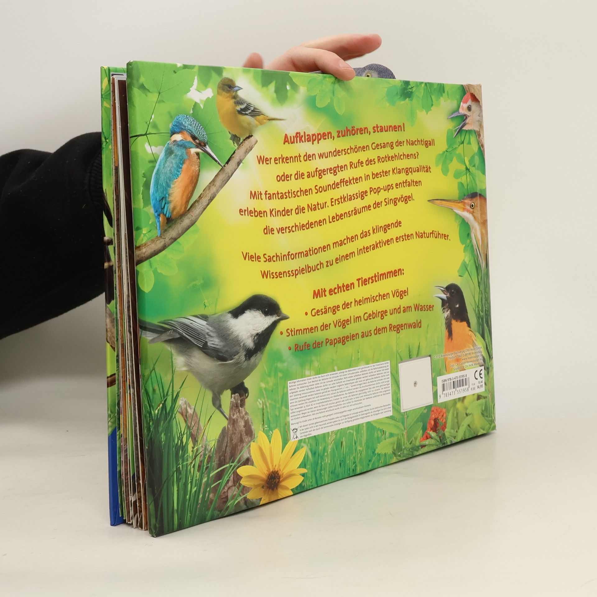Naturechte Vogelstimmen: Rund um die Uhr geht irgendwo auf der Erde die Sonne auf, und so vergeht keine Minute ohne das morgendliche Konzert, mit dem Vögel den neuen Tag begrüssen. Wir kennen vor allem die Stimmen der heimischen Vögel, doch die Rufe und Klänge der Vögel im Gebirge, am Wasser, im Regenwald und in der Wüste sind uns meist unbekannt. Der vierte Band des neuartigen Buchkonzeptes "Zauberklang-Serie" führt uns in die Welt der berauschenden Singvogelklänge. Ebenso fesselnd wie in den vorgängigen Bänden erleben wir nebst Bildern von berührender Schönheit auch in diesem klingenden Wissens-Spielbuch beim Umblättern atemberaubende Soundeffekte in überraschend natürlich-echter Klangqualität. Kunstvoll gestaltete, zum Umblättern für kleine Kinderhände jedoch delikate, faszinierende Pop-up-Seiten entführen uns in die verschiedenen Lebensräume unzähliger Vogelarten. Nebst qualitativ hochstehender Technik schenkt uns dieser Band ein hörfreudiges und naturnahes Erlebnis und erfüllt alle Voraussetzungen eines auditiven Sachbuches; eine bereichernde Zugabe zur bereits erfolgreichen Palette von Maurice Pledger. Ab 3 Jahren, *****, Silvia Zanetti.