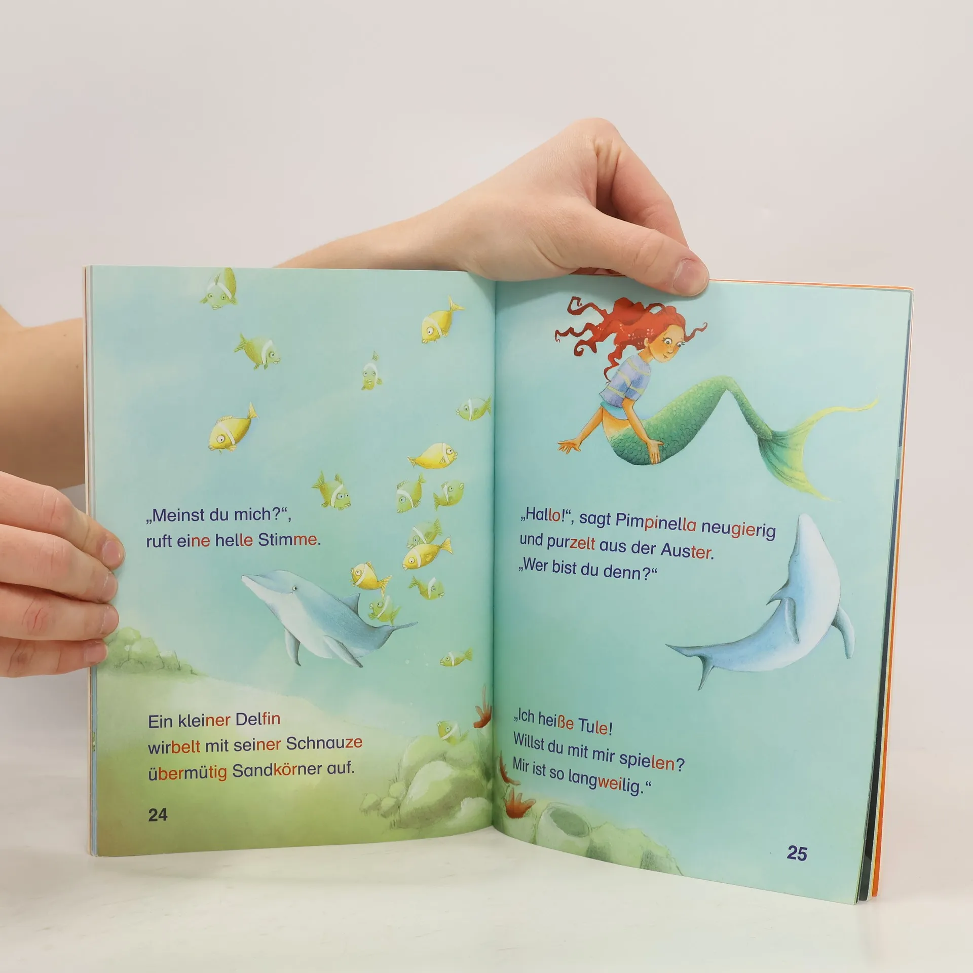 Pimpinella Seestern ist eine echte Prinzessin. Sie wohnt im Meer in einem wunderschönen Schloss aus schimmernden Muscheln. Mit dem Delfin Tule erlebt sie einen aufregenden Tag. - Ausgabe nach der Silbenmethode. Ab 6.