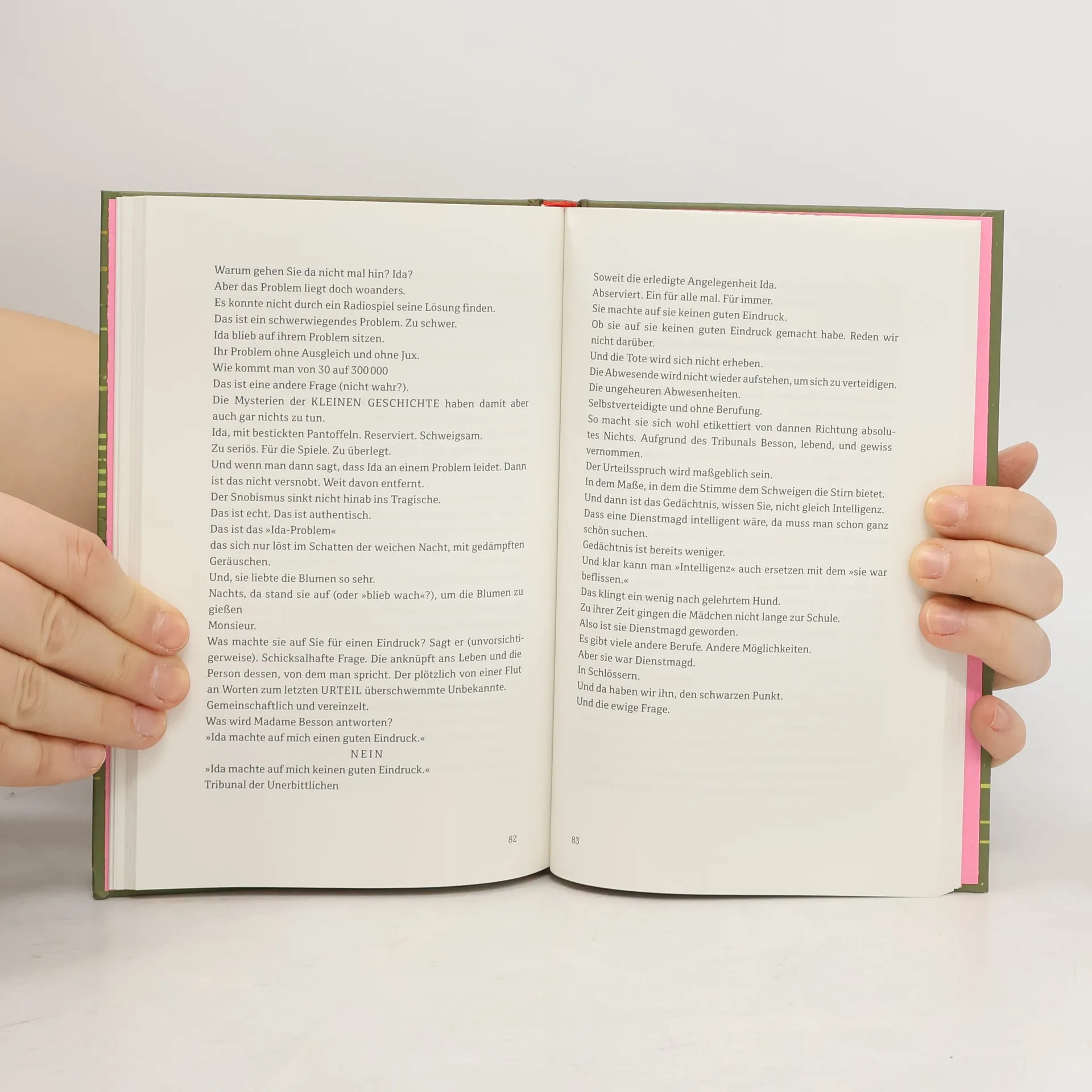 Ida, Heldin des Romans, ist mit der ersten Zeile tot. Dienstmagd im Hause der Familie Besson, nennt sich selbst einen 'Vogel der Nacht'. Woher nur dieser Name aus dem Reich des märchenhaft Schönen - möchte man sie fragen, diese dienstbeflissene Hand für Dritte. Und warum blickt sie immerzu nur auf ihre Füße? Ida wird von einem Laster in die Luft geschleudert und fliegt acht Meter weit. Dieser brutale Tod wirft Fragen auf. Wer ist Ida wirklich? Wie konnte sie es wagen zu sterben? Jetzt beginnen sie zu sprechen, die, die sie kannten, erlebt haben. Sie äußern Mutmaßungen, Meinungen, die sich auf kristallklare und ohrenbetäubende Weise kreuzen. Eine hell leuchtende Erzählung entsteht - ein Universum aus Egoismen, Konventionen, Grausamkeit und Gleichgültigkeit, in dessen Mitte Ida lacht, still und triumphierend. 'Der blinde, taube und stumme Dichter kann nur in einer Sprache außerhalb der Regeln schreien.' Hélène Bessette