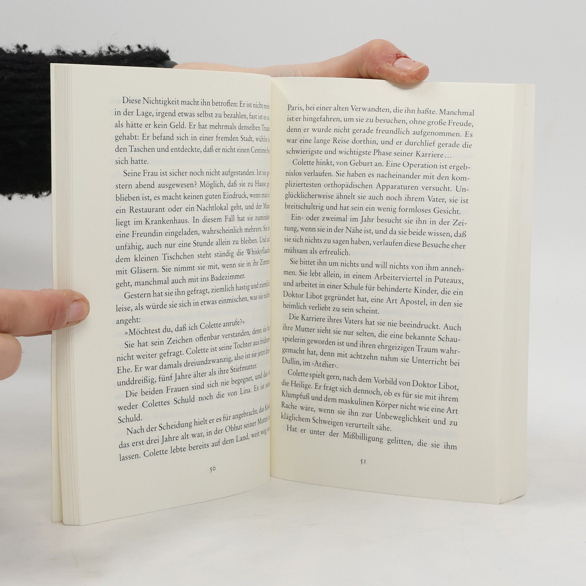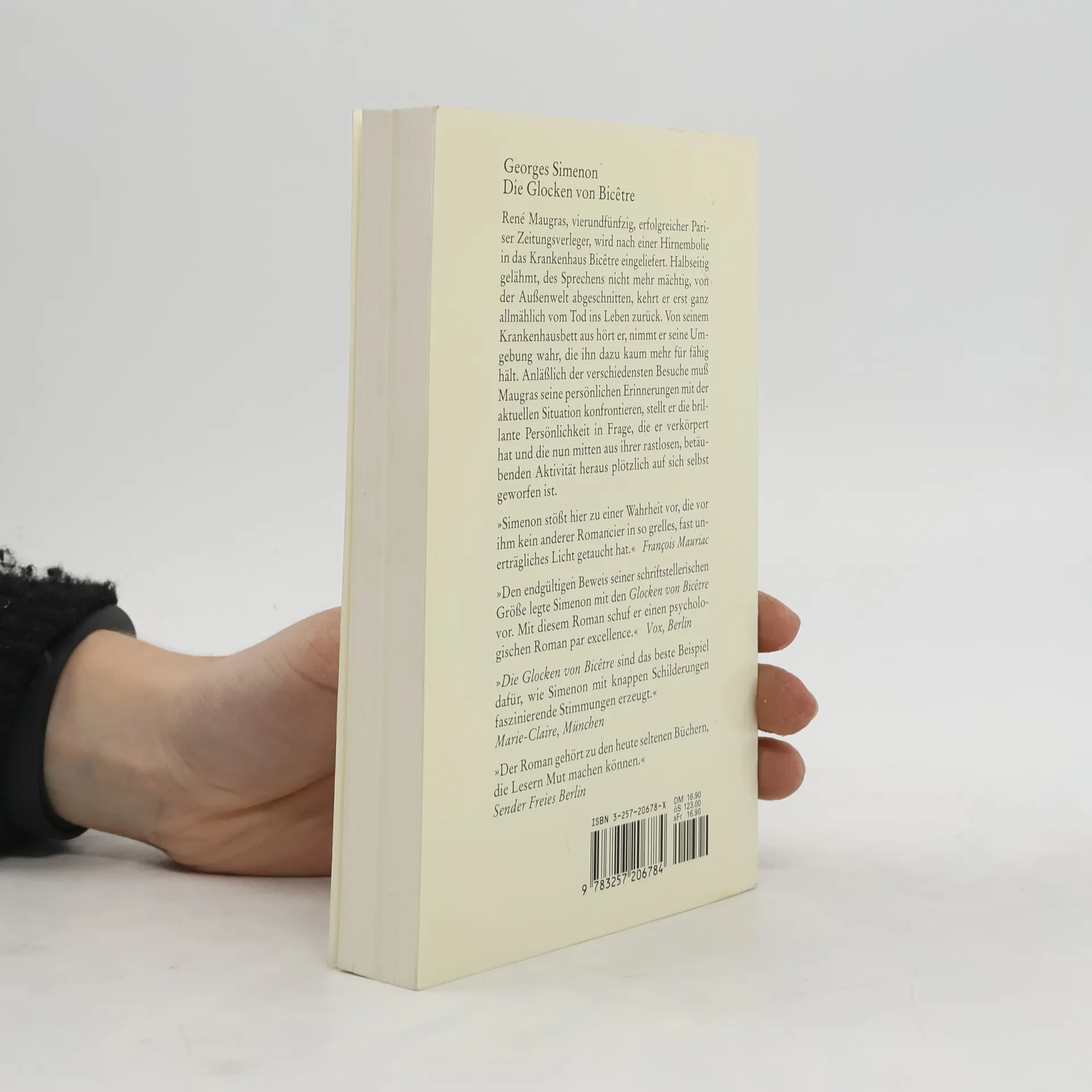 Belgischer Autor (1903-1989). - Mitten aus einer Tischrunde im Pariser 'Grand Véfour' fällt ein Mann ins Koma und erwacht wieder in der Klinik von Bicêtre. Seine Umgebung hält ihn für besinnungslos. Er selber weiß es besser. Hört die Gespräche am Bett, erinnert sich seines Lebens - der Erfolge als mächtiger Verleger, der Mißerfolge und Untergänge als Mensch