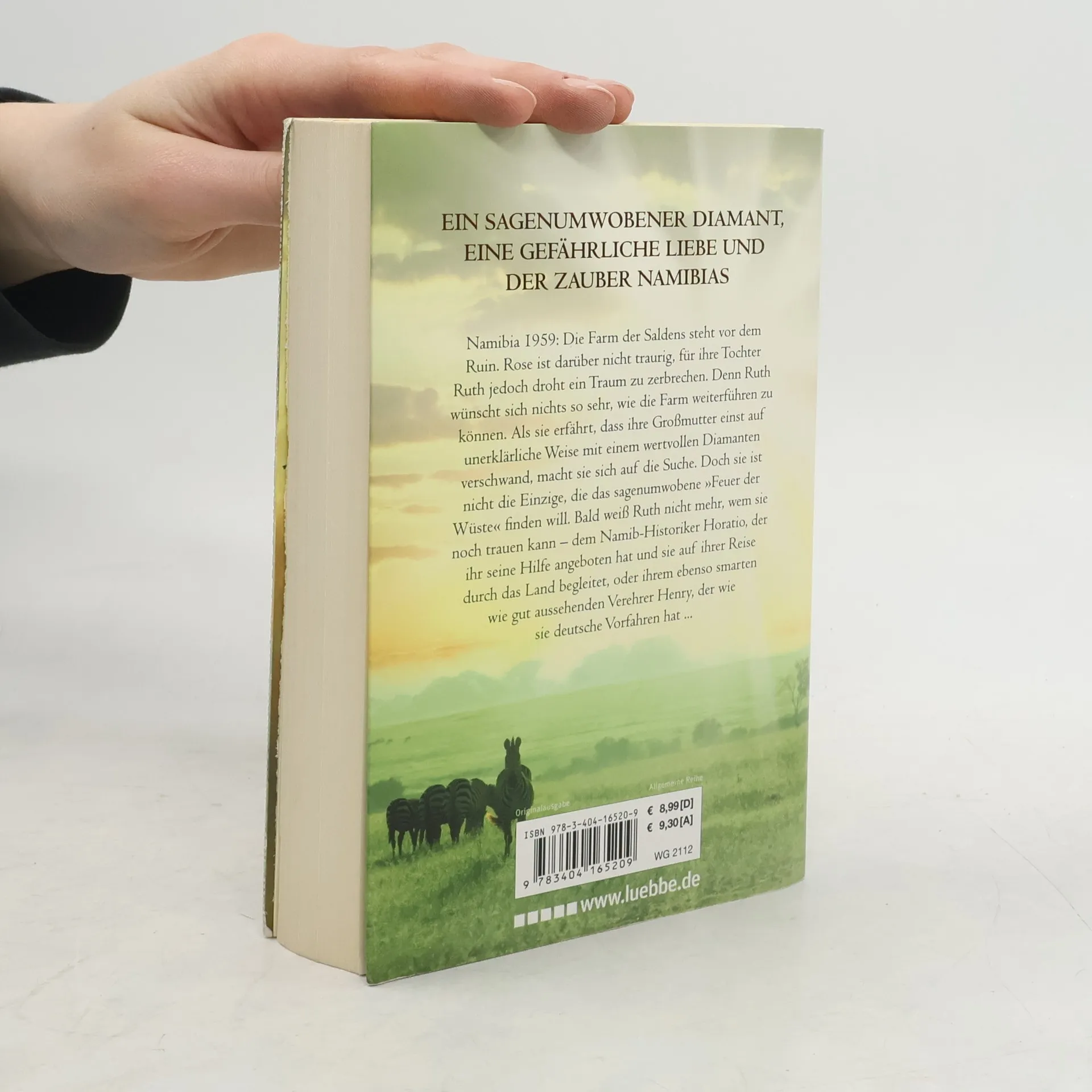 Die Farm der Saldens steht vor dem Ruin. Rose ist darüber nicht traurig, für ihre Tochter Ruth jedoch droht ein Traum zu zerbrechen. Als sie erfährt, dass ihre Grossmutter einst mit einem wertvollen Diamanten verschwand, macht Ruth sich auf die Suche. Doch sie ist nicht die Einzige, die das sagenumwobene ?Feuer der Wüste? finden will. Bald weiss Ruth nicht mehr, wem sie noch trauen kann ? dem Namib-Historiker Horatio, der sie auf ihrer Reise durch das Land begleitet, oder ihrem smarten Verehrer Henry, der wie sie deutsche Vorfahren hat ...Lesen, wegträumen, mitfiebern ? der grosse Roman zum Sehnsuchtsland Namibia.