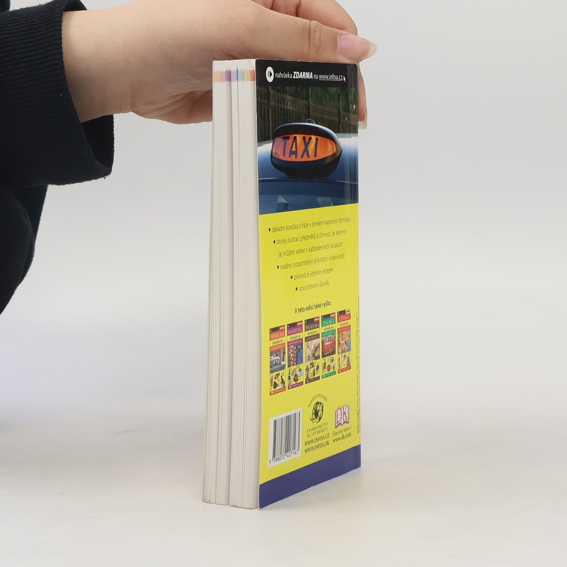 Základní slovíčka a fráze v tenkém kapesním formátu, stovky ilustrací předmětů a činností, se kterými se můžete setkat v každodenních situacích, snadno srozumitelný průvodce výslovností, průvodce jídelním lístkem, oboustranný slovník