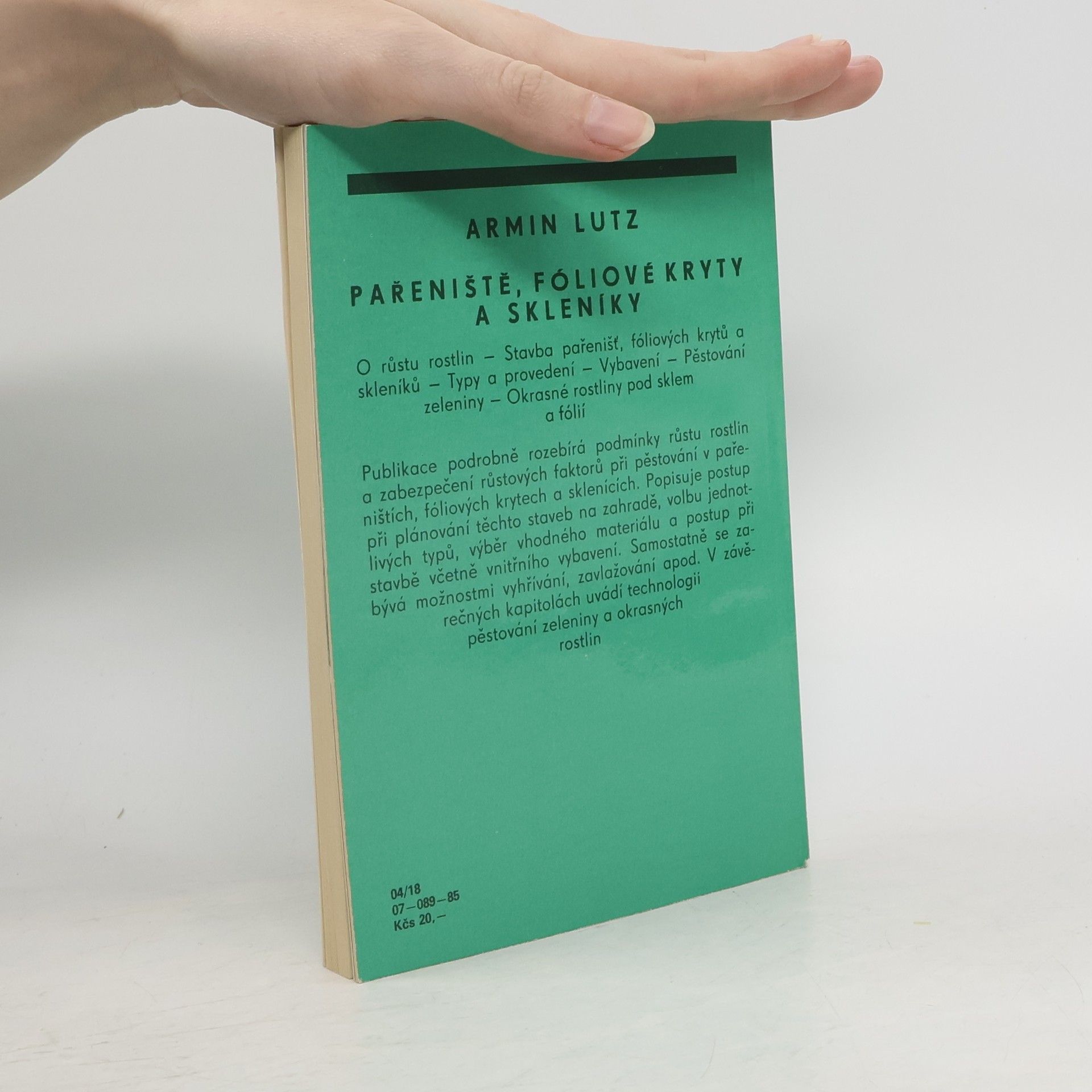 O růstu rostli - Stavba pařenišť, fóliových krytů a skleníků - Typy a provedení - Vybavení - Pěstování zeleniny - Okrasné rostliny pod sklem a fólií Publikace podrobně rozebírá podmínky růstu rostlin a zabezpečení růstových faktorů při pěstování v pařeništích, fóliových krytech a sklenících. Popisuje postup při plánování těchto staveb na zahradě, volbu jednotlivých typů, výběr vhodného materiálu a postup při stavbě včetně vnitřního vybavení. Samostatně se zabývá možnostmi vyhřívání, zavlažování apod. V závěrečných kapitolách uvádí technologii pěstování zeleniny a okrasných rostlin podle jednotlivých plodin.