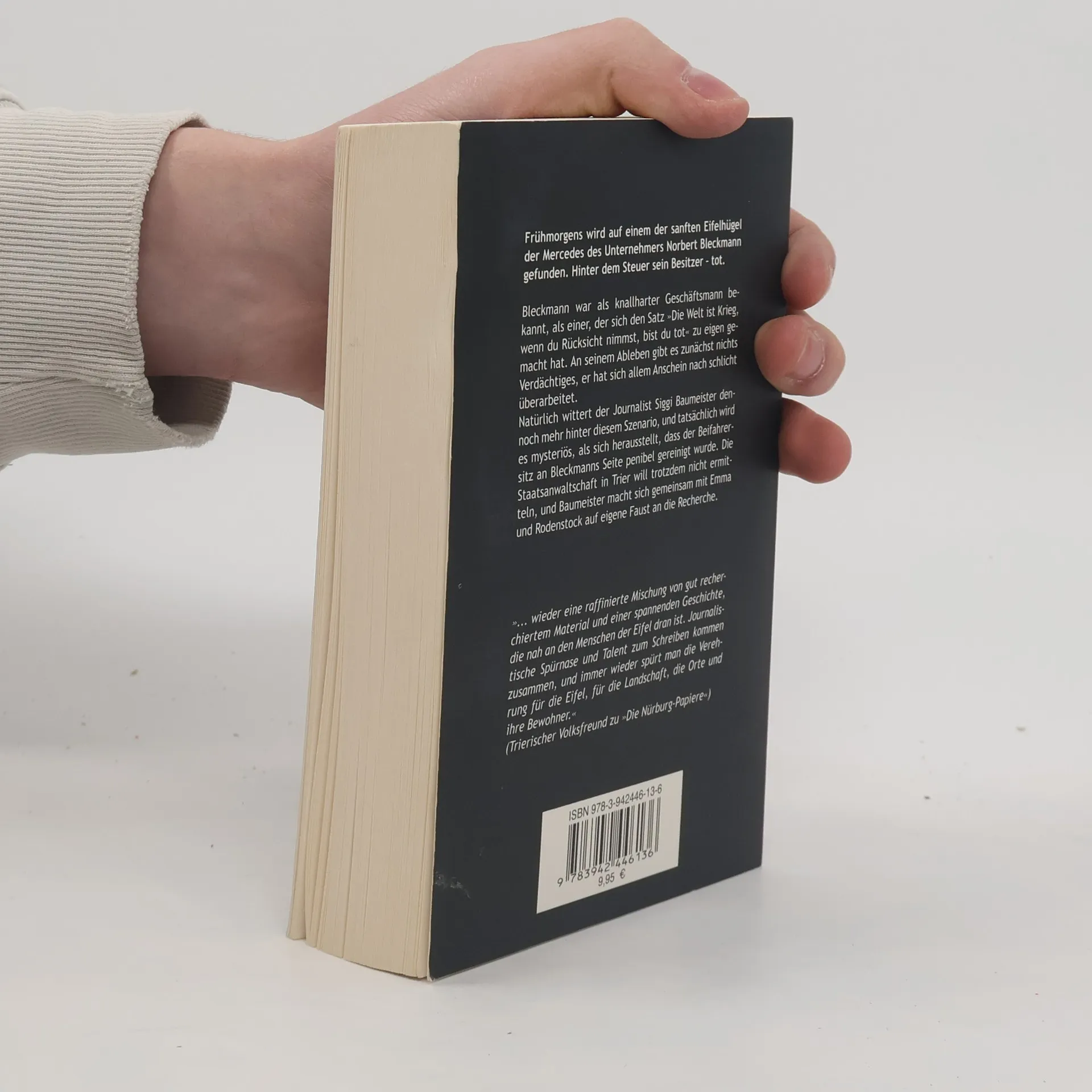 Von 2 eher unspektakulären Todesfällen lassen sich der Journalist Siggi Baumeister und seine Freundin, die ehemalige Kriminalbeamtin Rodenstock, zunächst nicht aufscheuchen. Doch die Äusserungen der jungen Witwe lassen sie vermuten, dass der Eifel wieder einmal Gefahr droht.