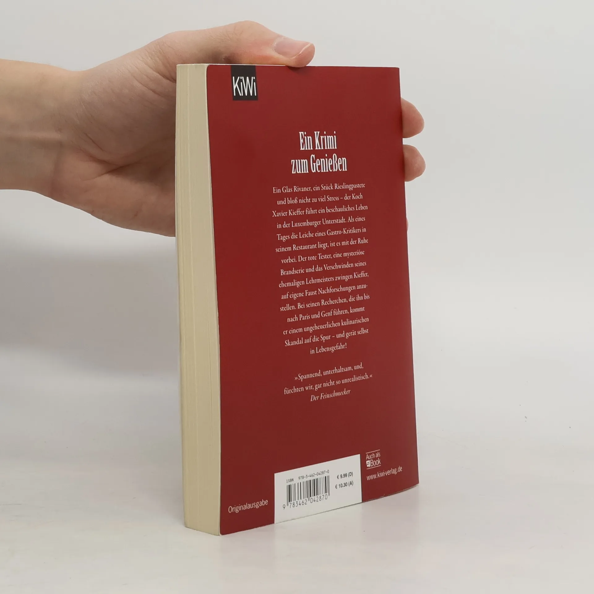 Ein Krimi zum Genießen! Der erste Fall für den kulinarischen Ermittler Xavier Kieffer. Der ehemalige Sternekoch Xavier Kieffer hat der Haute Cuisine abgeschworen und betreibt in der Luxemburger Unterstadt ein kleines Restaurant, wo er seinen Gästen Huesenziwwi, Bouneschlupp und Rieslingpaschtéit serviert. Doch dann bricht eines Tages ein renommierter Pariser Gastro-Kritiker tot in seinem Restaurant zusammen – und plötzlich steht Kieffer unter Mordverdacht. Als dann noch sein alter Lehrmeister spurlos verschwindet, beschließt der Luxemburger, die Ermittlungen selbst in die Hand zu nehmen; sie führen ihn bis nach Paris und Genf. Dabei stößt er auf eine mysteriöse, außergewöhnlich schmackhafte Frucht, auf gewissenlose Lebensmittelkonzerne und egomanische Fernsehköche. Immer tiefer taucht Kieffer in die von Konkurrenzkampf und Qualitätsdruck beherrschte Gourmetszene ein – und erkennt, was auf dem Spiel steht.