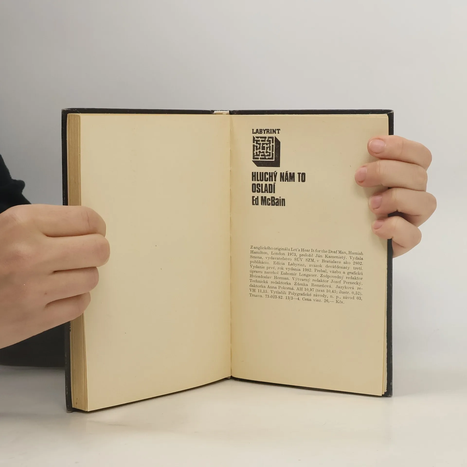 V jedno slnečné aprílové popoludnie zacengá na osemdesiatom siedmom okrsku telefón a ohlási sa Hluchý, zločinec, pre ktorého malo celé detektívne oddelenie už neraz hlavu v smútku. Oznámi, že v posledný aprílový deň ukradne pol milióna dolárov z istej banky, a aby polícii ešte väčšmi uľahčil úlohu, posiela im postupne celý obrázkový rébus, v ktorom sa tají názov a adresa banky. Steve Carella a jeho kolegovia nevedia, čo si majú o tejto čudnej zdielnosti myslieť, no v kútiku duše sa im tají podozrenie: Hluchý nám to osladí. A majú pravdu. Navyše sa ukáže, že jeho plán je mimoriadne rafinovaný a nie nepodstatnú úlohu v ňom zohráva aj detektív Carella. Ed McBain (vlastným menom Evan Hunter) je našim čitateľom dobre známy ako autor populárnej série policajných románov o osemdesiatom siedmom okrsku