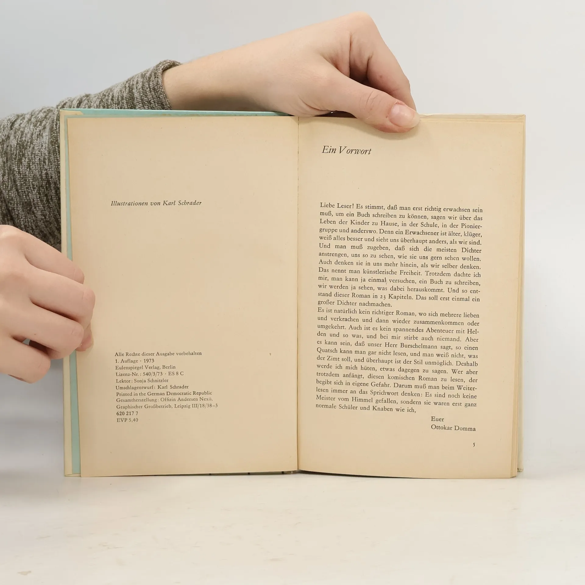 Erneut schlägt der brave Schüler Ottokar zu. Nicht nur, dass ein Streich dem anderen folgt, er schreibt auch noch einen Roman, in dem Lehrern und Schülern mehr oder weniger rühmliche Rollen zukommen. Das Heidenröslein wird zum Weinen gebracht, Herr Luschmil verteilt wie üblich Strafaufgaben, Freund Harald ist zwischen Mensch- und Pioniersein hin- und hergerissen, mit Jule Bock und Bärbel Patzig zieht die Liebe ein, und Vater und Mutter Domma haben wieder alle Hände voll tun mit dem „Weltverbesserer Ottokar“.
