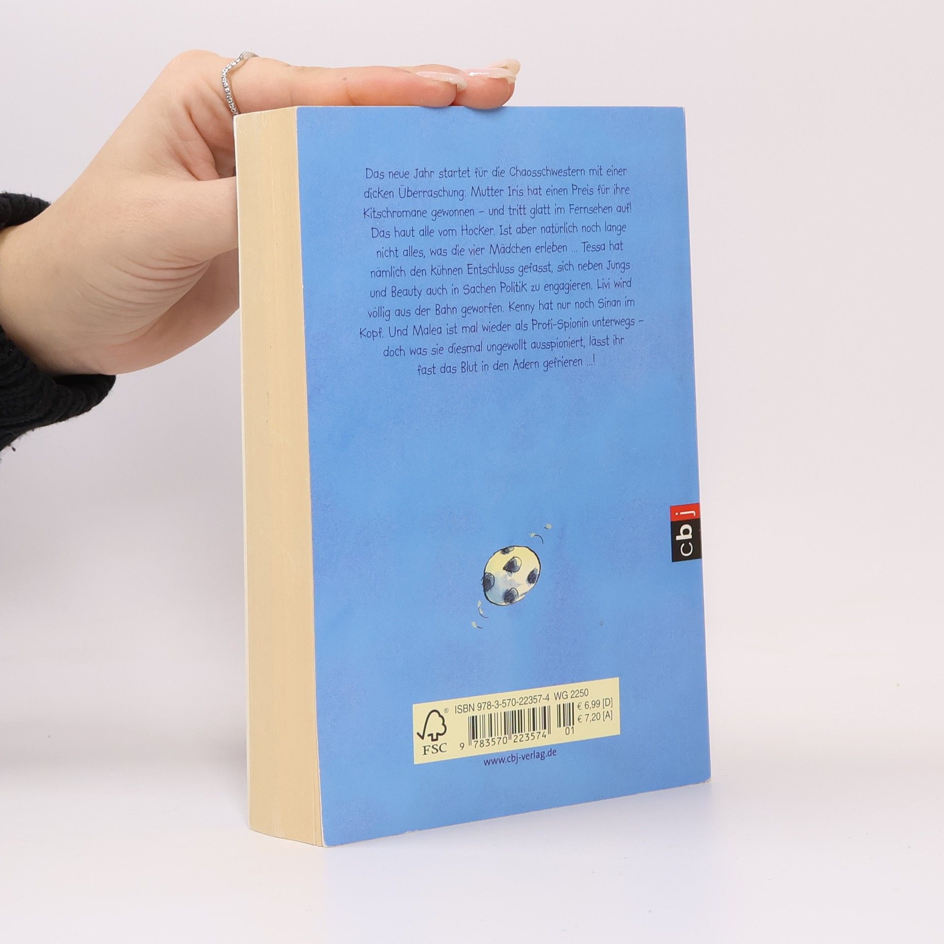 Das neue Jahr startet für die Chaosschwestern mit einer dicken Überraschung: Mutter Iris hat einen Preis für ihre Kitschromane gewonnen – und tritt glatt im Fernsehen auf! Das haut alle vom Hocker. Ist aber natürlich noch lange nicht alles, was die vier Mädchen erleben ... Tessa hat nämlich den kühnen Entschluss gefasst, sich neben Jungs und Beauty auch in Sachen Politik zu engagieren. Livi wird völlig aus der Bahn geworfen. Kenny hat nur noch Sinan im Kopf. Und Malea ist mal wieder als Profi-Spionin unterwegs – doch was sie diesmal ungewollt ausspioniert, lässt ihr fast das Blut in den Adern gefrieren ...!