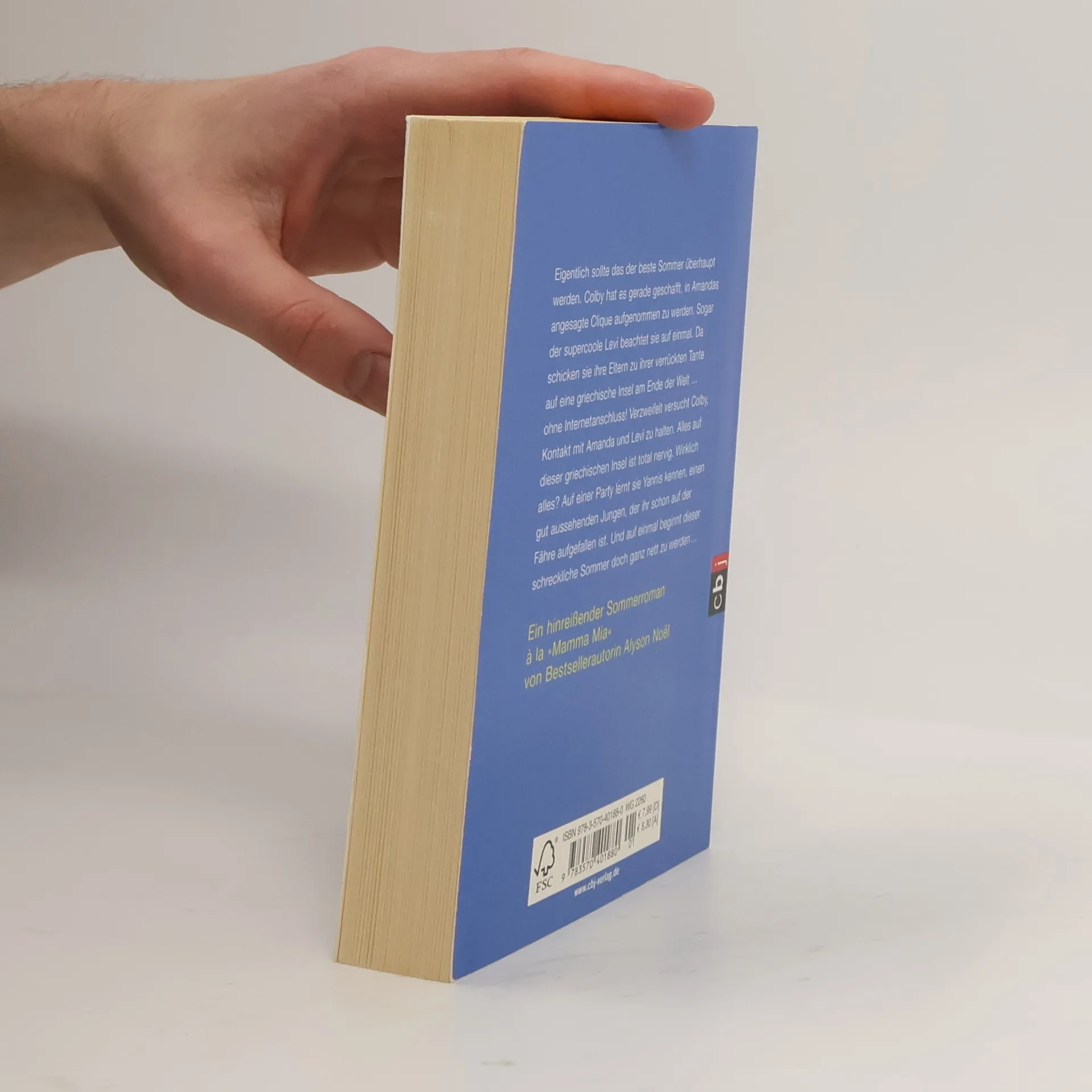Ein Roman über die große Liebe – und die Suche nach sich selbst Colby hat es gerade geschafft, in Amandas angesagte Clique aufgenommen zu werden. Eigentlich sollte das der beste Sommer überhaupt werden, sogar der supercoole Levi beachtet sie auf einmal. Da schicken sie ihre Eltern zu ihrer verrückten Tante auf eine griechische Insel am Ende der Welt … ohne Internetanschluss! Verzweifelt versucht Colby, Kontakt mit Amanda und Levi zu halten. Alles auf dieser griechischen Insel ist total nervig. Wirklich alles? Auf einer Party lernt sie Yannis kennen, einen gut aussehenden Jungen, der ihr schon auf der Fähre aufgefallen ist. Und auf einmal beginnt dieser schreckliche Sommer doch ganz nett zu werden …