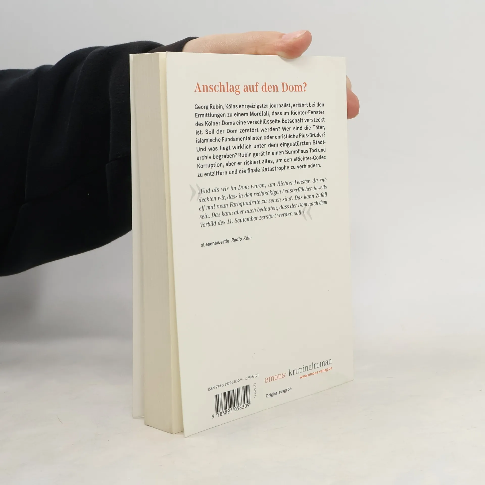 Georg Rubin, Kölns ehrgeizigster Journalist, erfährt bei den Ermittlungen zu einem Mordfall, dass im Richter-Fenster des Kölner Doms eine verschlüsselte Botschaft versteckt ist. Soll der Dom zerstört werden? Wer sind die Täter, islamische Fundamentalisten oder christliche Pius-Brüder. Und was liegt wirklich unter dem eingestürzten Stadtarchiv begraben. Rubin gerät in einem Sumpf aus Tod und Korruption, aber er riskiert alles um den 'Richter-Code' zu entziffern und die Katastrophe zu verhindern.