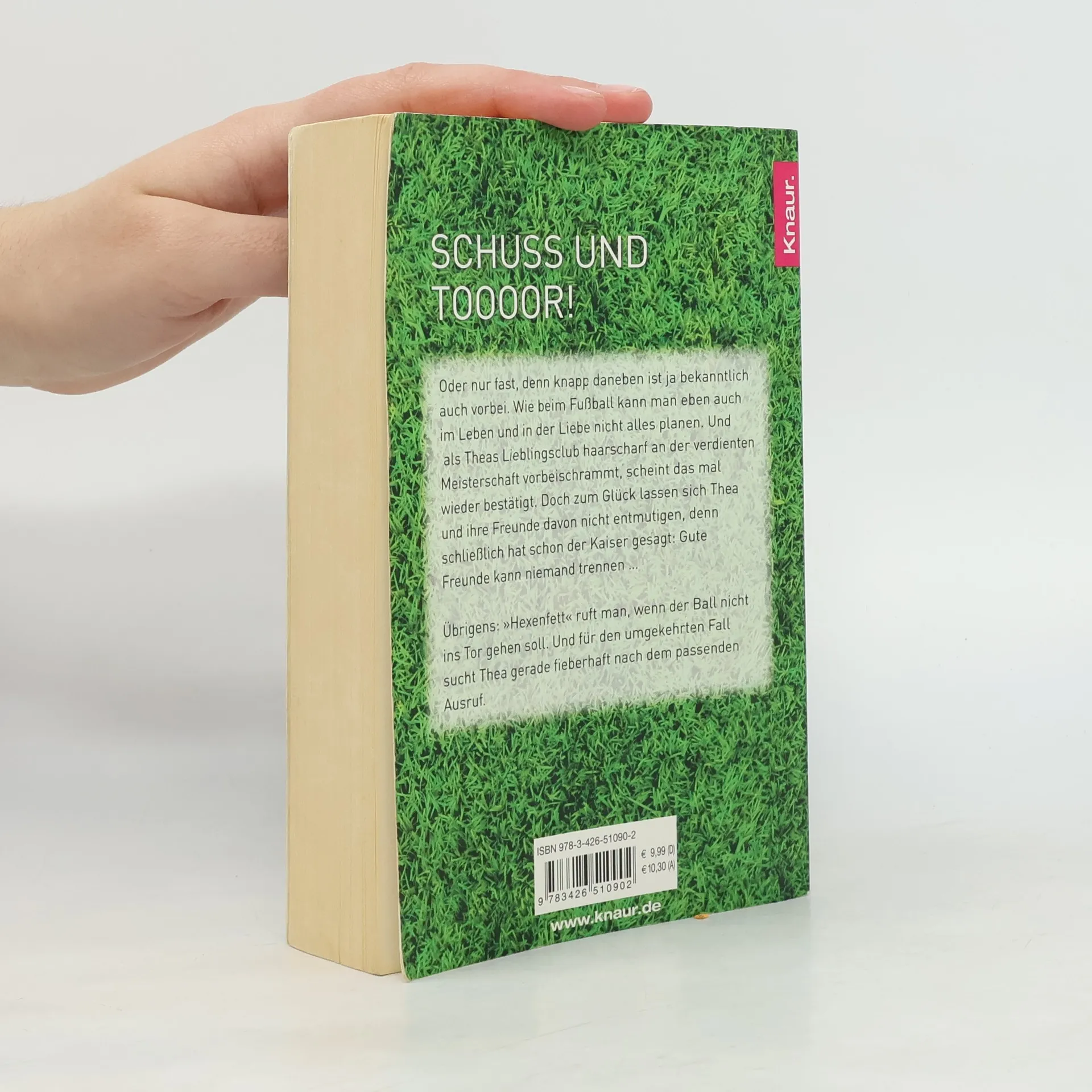 Schuss und Toooor! Oder nur fast, denn knapp daneben ist ja bekanntlich auch vorbei. Wie beim Fußball kann man eben auch im Leben und in der Liebe nicht alles planen. Und als Theas Lieblingsclub haarscharf an der verdienten Meisterschaft vorbeischrammt, scheint das mal wieder bestätigt. Doch zum Glück lassen sich Thea und ihre Freunde davon nicht entmutigen, denn schließlich hat schon der Kaiser gesagt: Gute Freunde kann niemand trennen … Übrigens: „Hexenfett“ ruft man, wenn der Ball nicht ins Tor gehen soll. Und für den umgekehrten Fall sucht Thea gerade fieberhaft nach dem passenden Ausruf.