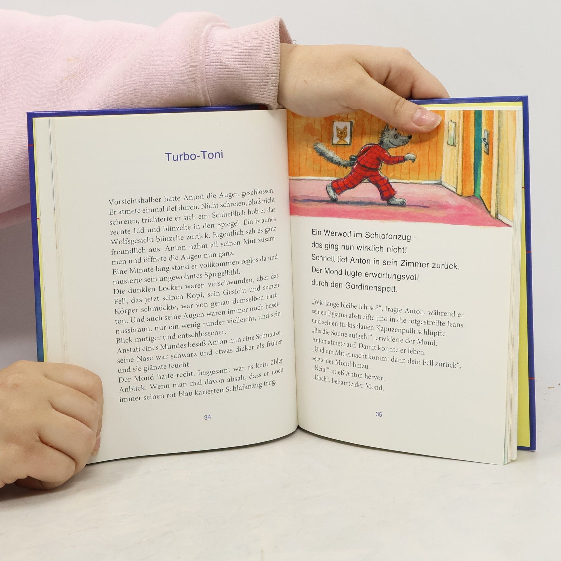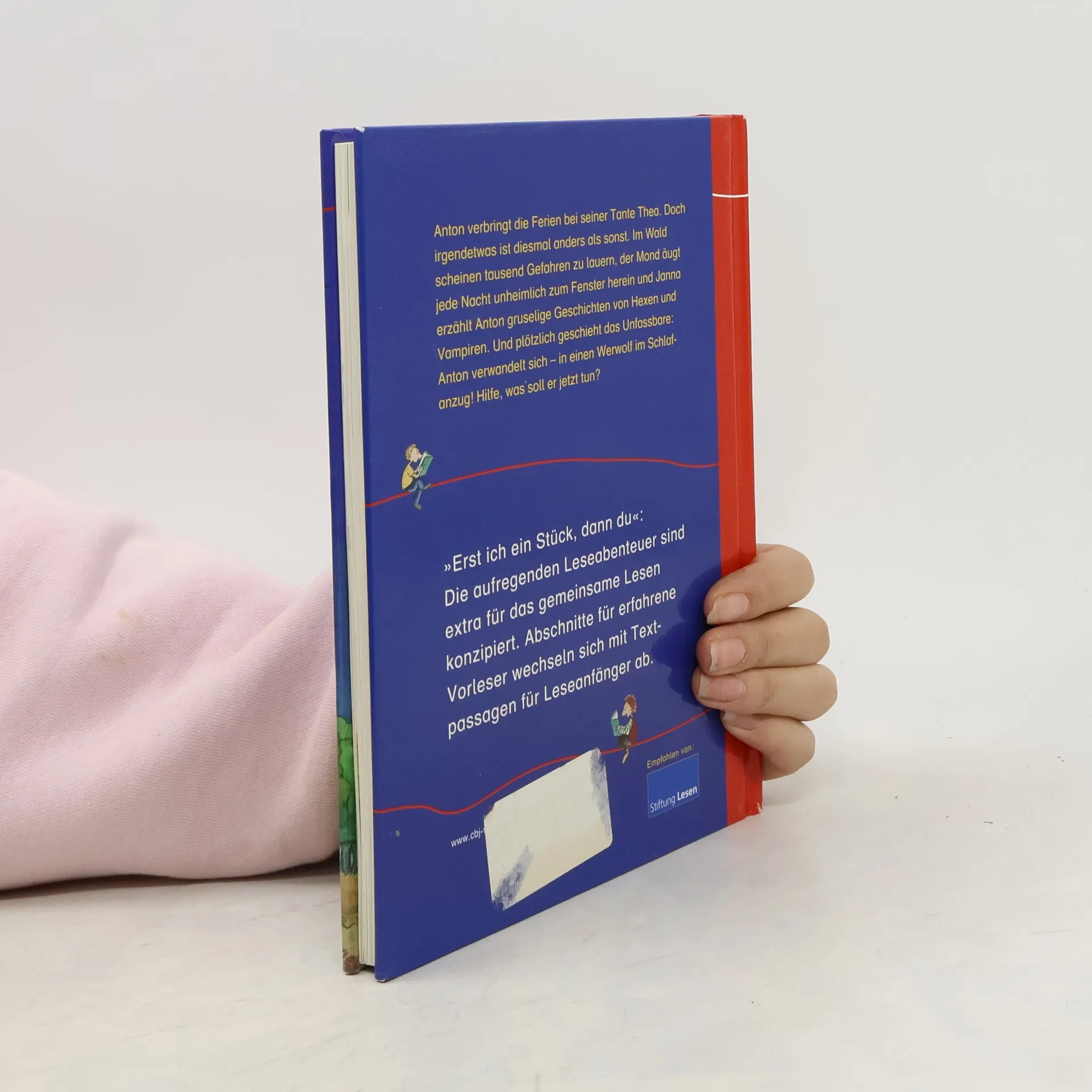 Anton verbringt die Ferien bei seiner Tante Thea. Doch irgendetwas ist diesmal anders als sonst. Im Wald scheinen tausend Gefahren zu lauern, der Mond äugt jede Nacht unheimlich durchs Fenster herein und seine Freundin Janna erzählt ihm lauter gruselige Geschichten von Hexen und Vampiren. Und plötzlich geschieht das Unfassbare: Anton verwandelt sich – in einen Werwolf im Schlafanzug! Hilfe, was soll er nun tun? „Erst ich ein Stück, dann du“ ist • extra für das gemeinsame Lesen konzipiert • das Buchkonzept von Patricia Schröder, das die Lücke zwischen Vorlese- und Erstlesebuch schließt • aktive Leseförderung, denn gemeinsam Lesen motiviert und macht Spaß • gefördert und empfohlen von der Stiftung Lesen