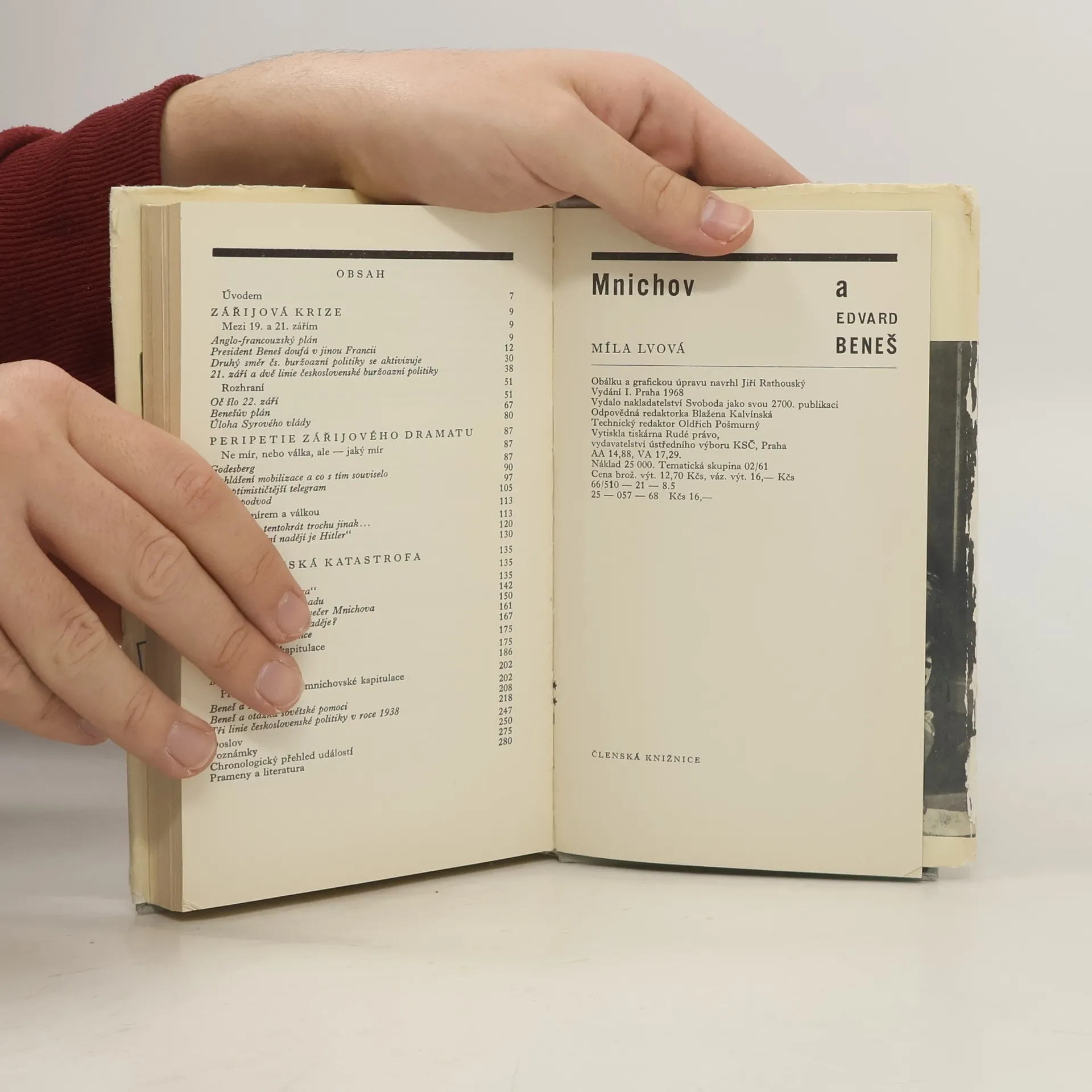 Práce přispívá k objasnění závěrečné fáze vývoje ČSR před Mnichovem. Líčení historických událostí předcházejících mnichovskou katastrofu začíná předáním anglo-francouzské nóty presidentu Benešovi 19. září 1938. Podrobně se zabývá Benešovým postojem, politikou čs. buržoazie, úlohou Syrového vlády a mnichovskou kapitulací. V závěru analyzuje příčiny Benešovy mnichovské kapitulace, které pokládá za politické, a všímá si otázky sovětské pomoci. Obraz mezinárodní pozice Československa, jeho vnitropolitické situace před Mnichovem podává tak, aby se vytvořily předpoklady pro zkoumání a správné ocenění politiky komunistické strany v té době.