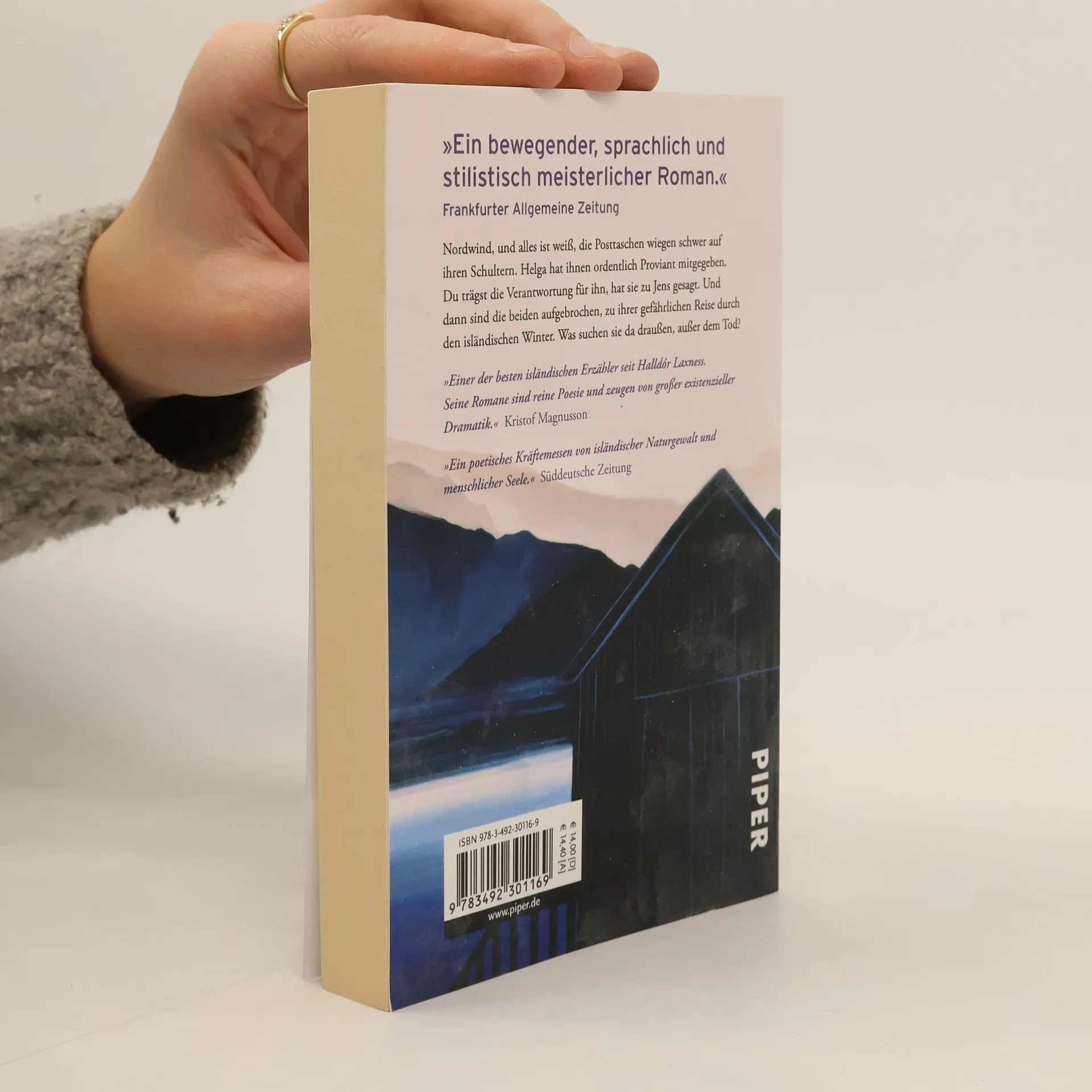 Nordwind, und alles ist weiß, die Posttaschen wiegen schwer auf ihren Schultern. Helga hat ihnen ordentlich Proviant mitgegeben. Du trägst die Verantwortung für ihn, hat sie zu Jens gesagt. Und dann sind die beiden aufgebrochen, zu ihrer gefährlichen Reise durch den isländischen Winter. Was suchen sie da draußen, außer dem Tod?