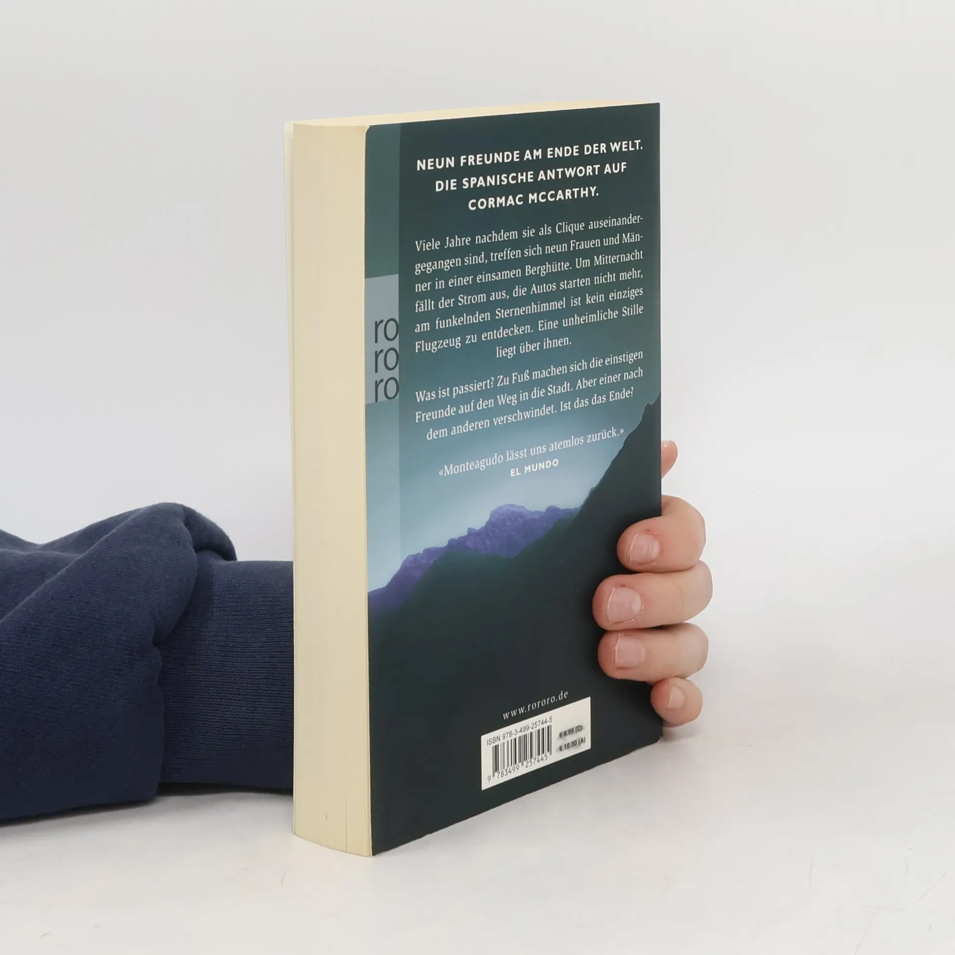 Neun Freunde am Ende der Welt. Die spanische Antwort auf Cormac McCarthy. Viele Jahre, nachdem sie als Clique auseinander gegangen sind, treffen sich neun Frauen und Männer in einer einsamen Berghütte. Um Mitternacht fällt der Strom aus, die Autos starten nicht mehr, am funkelnden Sternenhimmel ist kein einziges Flugzeug zu entdecken. Eine unheimliche Stille liegt über ihnen. Was ist passiert? Zu Fuß machen sich die einstigen Freunde auf den Weg in die Stadt. Aber einer nach dem anderen verschwindet. Ist das das Ende?
