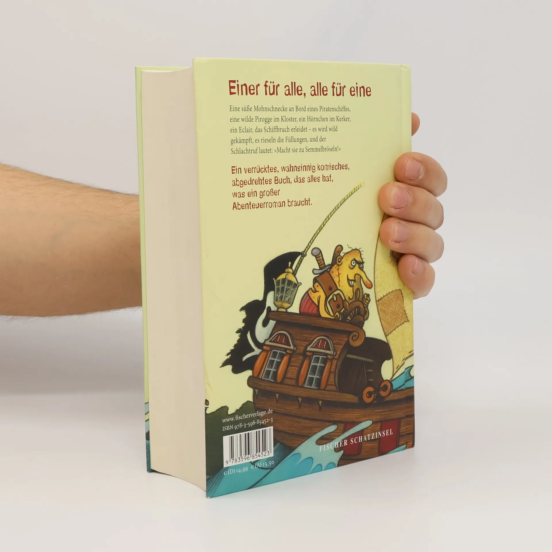 Einer für alle, alle für eine Eine süße Mohnschnecke als Piratenkapitän, eine wilde Pirogge im Kloster, ein Hörnchen im Kerker, ein Eclair, das Schiffbruch erleidet. Es wird wild gekämpft, es rieseln die Füllungen, und der Schlachtruf lautet: Macht sie zu Semmelbröseln! Dieses Buch ist einzigartig. Es ist verrückt, wahnsinnig komisch und abgedreht. Und es hat alles, was ein großer Abenteuerroman braucht. Und alle, wirklich alle, werden ihren Spaß haben und lauthals lachen, wenn sie die essbaren Helden auf ihrem steinigen Weg zum großen Glück begleiten. Ein Hoch auf alle Kaffeestückchen und Teigtaschen dieser Welt!