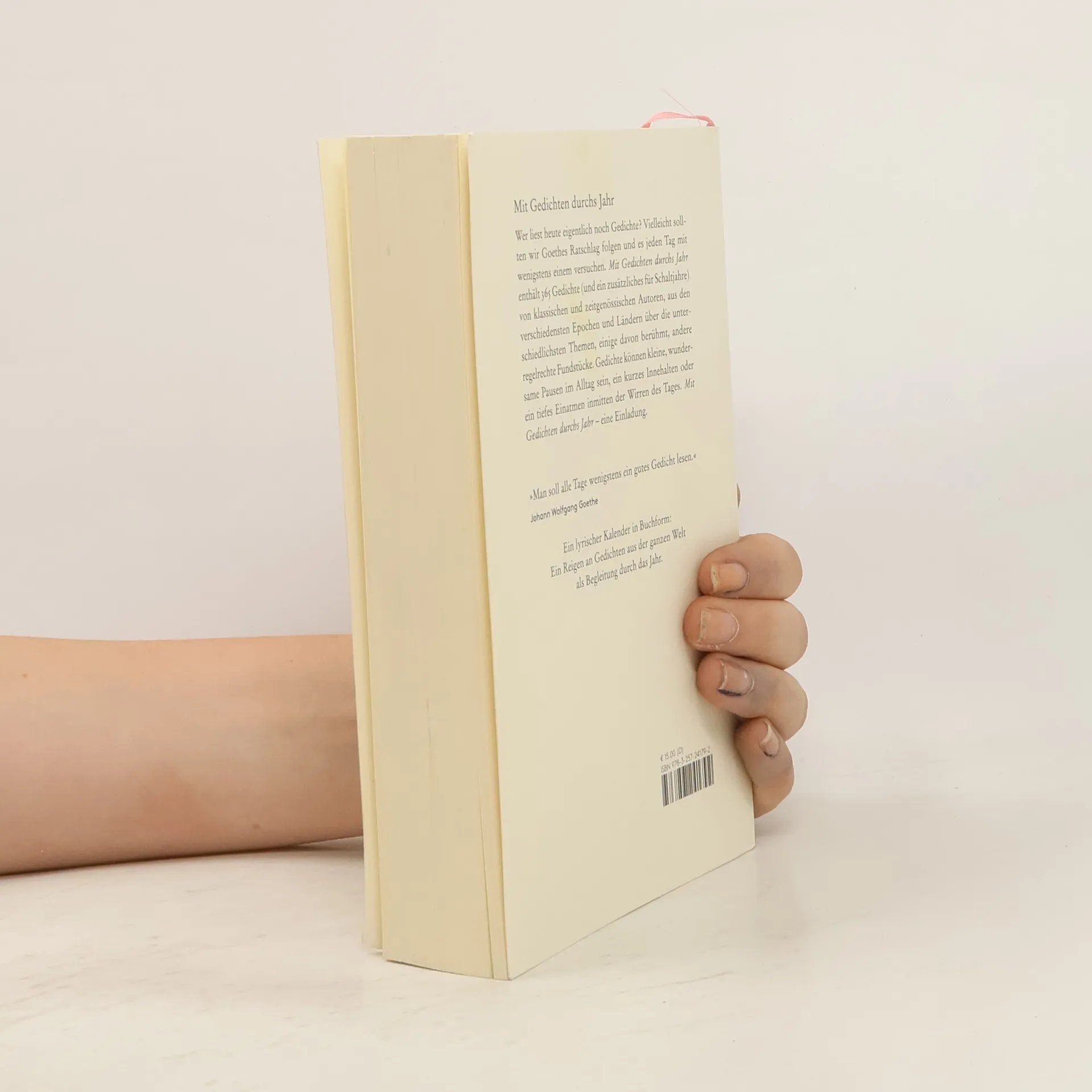Wer liest heute eigentlich noch Gedichte? Vielleicht sollten wir Goethes Ratschlag folgen und es jeden Tag mit wenigstens einem versuchen. Mit Gedichten durchs Jahr enthält 365 Gedichte von klassischen und zeitgenössischen Autoren, einige davon berühmt, andere regelrechte Fundstücke, aus den verschiedensten Epochen und Ländern über die unterschiedlichsten Themen. Gedichte können kleine, wundersame Pausen im Alltag sein, ein kurzes Innehalten oder ein tiefes Einatmen inmitten der Wirren des Tages. Mit Gedichten durchs Jahr eine Einladung."