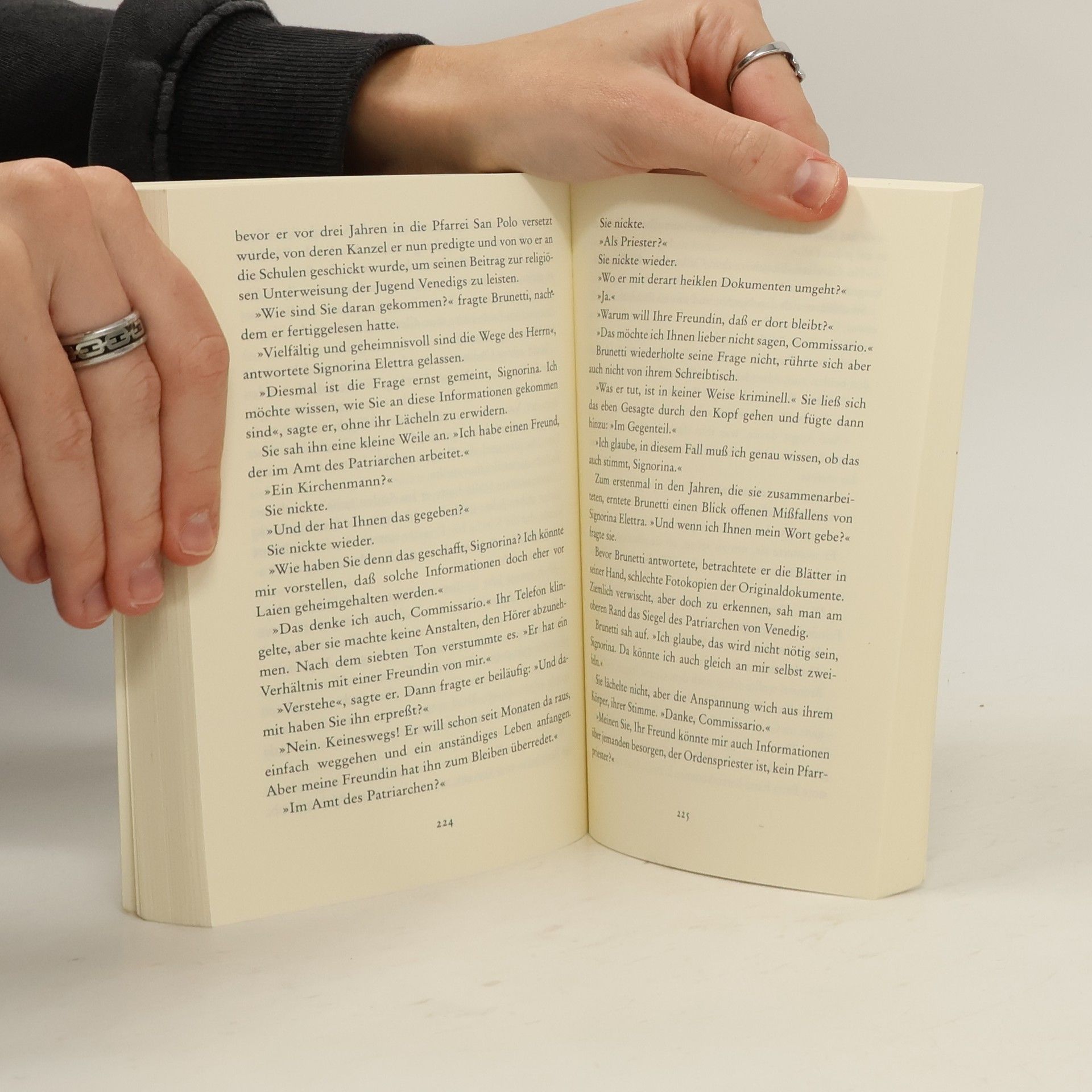 Brunetti hat nicht viel zu tun, als sein Chef im Urlaub ist und Venedig erst allmählich aus dem Winterschlaf erwacht. Doch da beginnen die Machenschaften der Kirche sein Berufs- und Privatleben zu überschatten: Suor Immacolata, die aufopfernde Pflegerin von Brunettis Mutter, ist nach dem unerwarteten Tod von fünf Patienten aus ihrem Orden ausgetreten. Sie hegt einen schrecklichen Verdacht. "