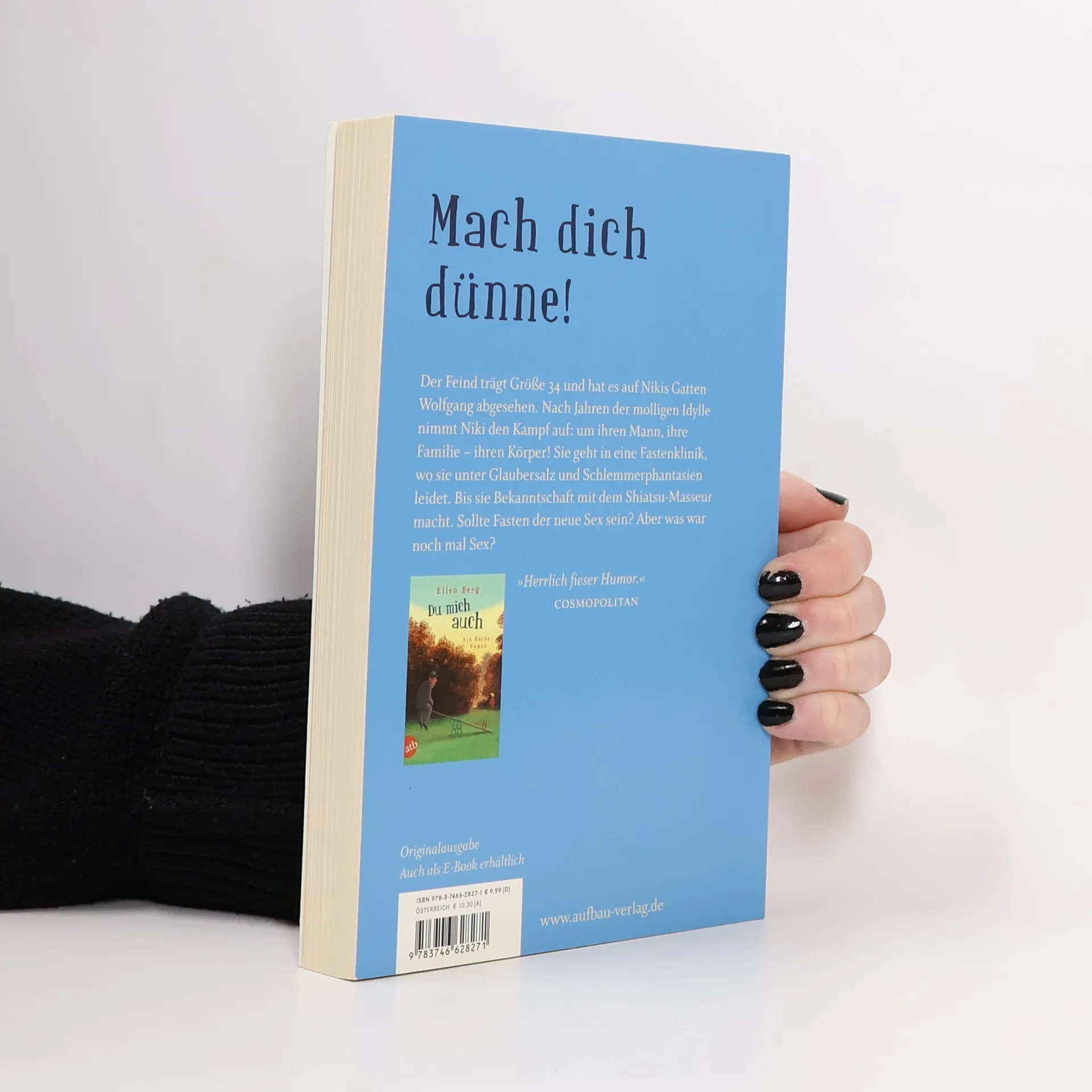Mach dich dünne! Der Feind trägt Größe 34 und hat es auf Nikis Gatten Wolfgang abgesehen. Nach Jahren der molligen Idylle nimmt Niki den Kampf auf: um ihren Mann, ihre Familie – ihren Körper! Sie geht in eine Fastenklinik, wo sie unter Glaubersalz und Schlemmerphantasien leidet. Bis sie Bekanntschaft mit dem Shiatsu-Masseur macht. Sollte Fasten der neue Sex sein? Aber was war noch mal Sex? „Herrlich fieser Humor.“ Cosmopolitan