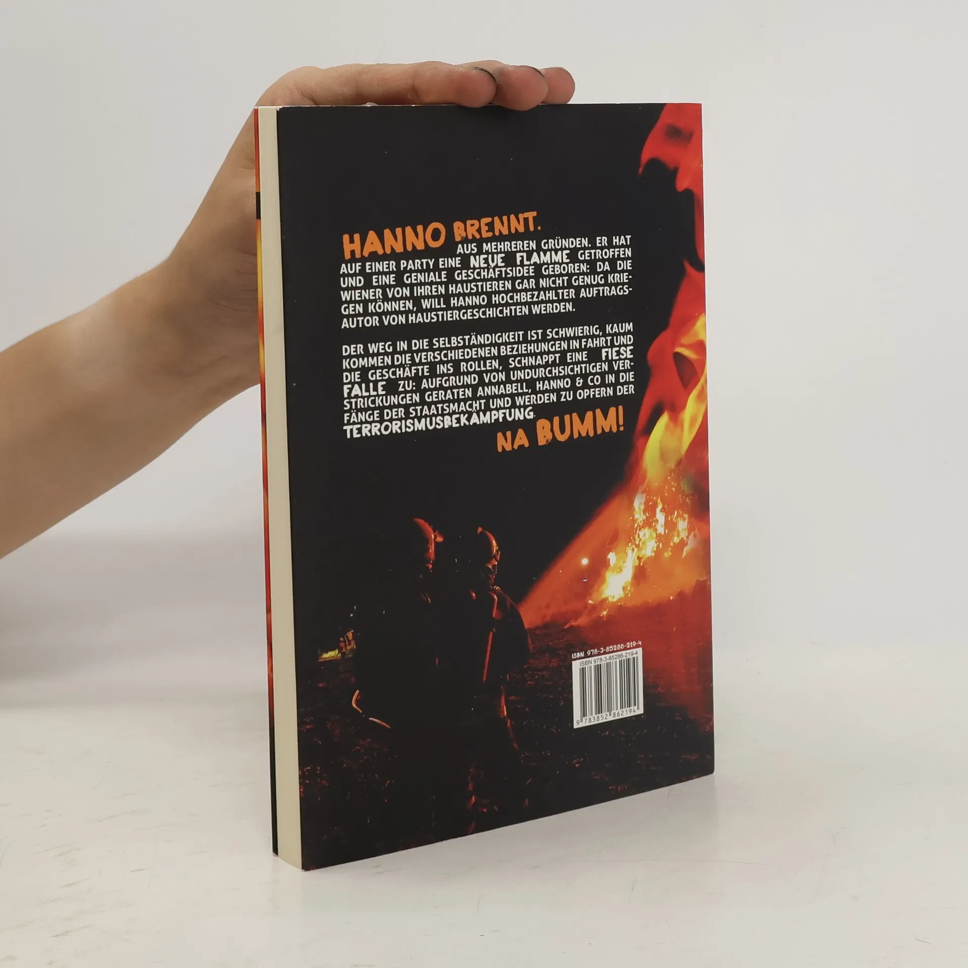 Hanno brennt. Aus mehreren Gründen. Er hat auf einer Party eine neue Flamme getroffen und eine geniale Geschäftsidee geboren: Da die Wiener von ihren Haustieren gar nicht genug kriegen können, will Hanno hochbezahlter Auftragsautor von Haustiergeschichten werden. Die dazugehörigen Kunden werden in Aida-Konditoreien gekeilt. Der Weg in die Selbständigkeit ist schwierig, hilfreich zur Seite stehen Mitbewohner Karl (Langzeitstudent, DJ, Internetfreak), die forsche Frau Kommerzialrat Pochsteiner (Josefstädterin, Hundehalterin und Villabesitzerin) und die ominöse Schöne Annabell (Hüterin der Online-Krativtauschbörse Artpool und Kämpferin für das Gute). Kaum kommen die verschiedenen Beziehungen in Fahrt und die Geschäfte ins Rollen, schnappt eine fiese Falle zu: Aufgrund von undurchsichtigen Verstrickungen geraten Annabell, Hanno & Co in die Fänge der Staatsmacht und werden zu Opfern der Terrorismusbekämpfung. Na bumm!