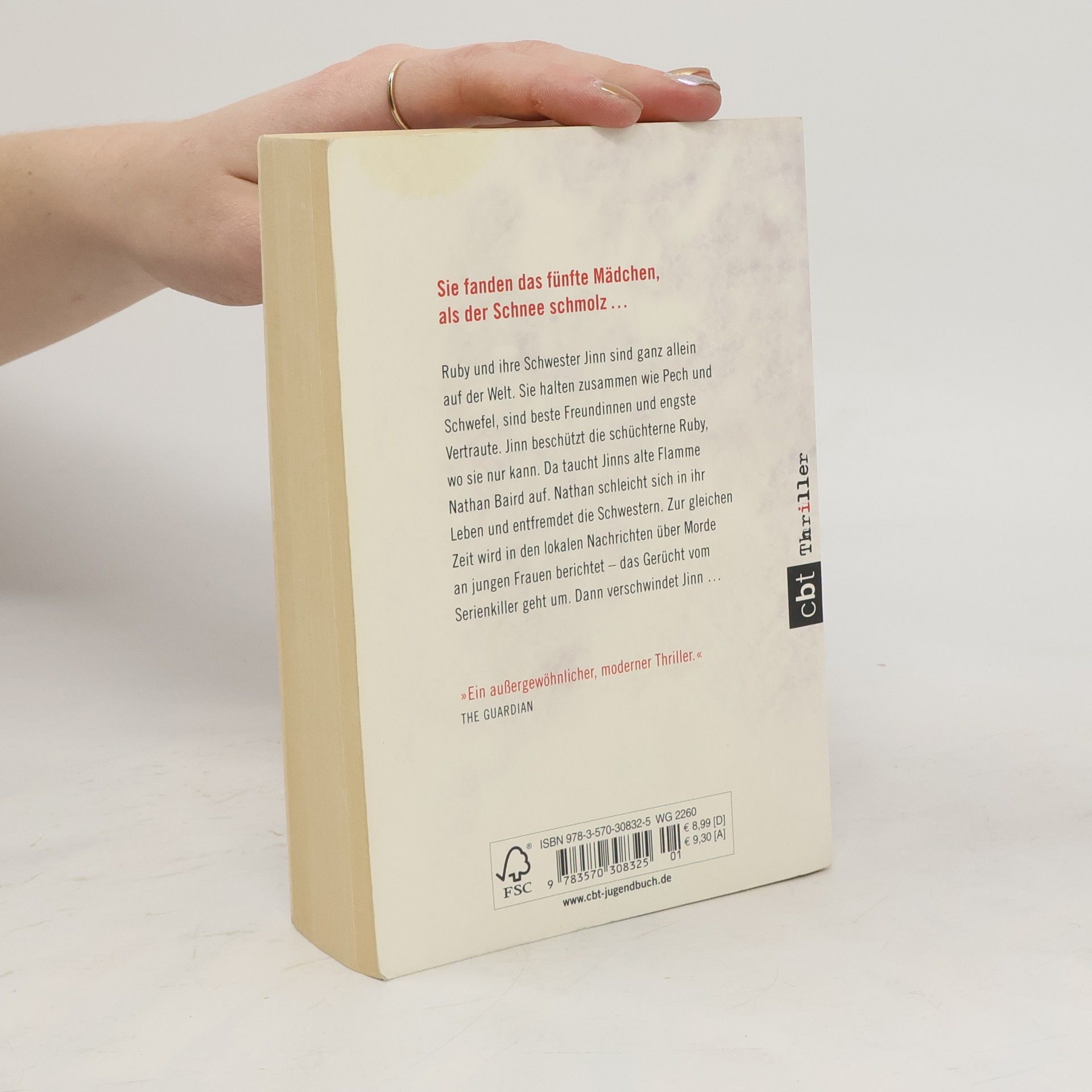 Sie fanden das fünfte Mädchen, als der Schnee schmolz … Ruby und Jinn halten zusammen wie Pech und Schwefel. Kein Wunder, sind sie doch ganz allein auf der Welt in ihrem englischen Dorf. Jinn, die charismatische ältere Schwester, beschützt die schüchterne Ruby wo sie nur kann. Das ändert sich, als plötzlich Nathan auftaucht, Jinns alte Flamme aus Schulzeiten, der nach Meinung der Dorfbewohner 'nichts Gutes' im Schilde führt. Langsam aber sicher verfällt Jinn Nathan, und Ruby muss hilflos mitansehen, wie Nathan ihre Schwester in sein zwielichtiges Milieu zieht. Zur gleichen Zeit wird in den lokalen Nachrichten über Morde an jungen Frauen berichtet – das Gerücht vom Serienkiller geht um. Ruby und Jinn ignorieren diese Nachrichten, schließlich geht es sie nichts an. Doch dann wird Jinn vermisst…
