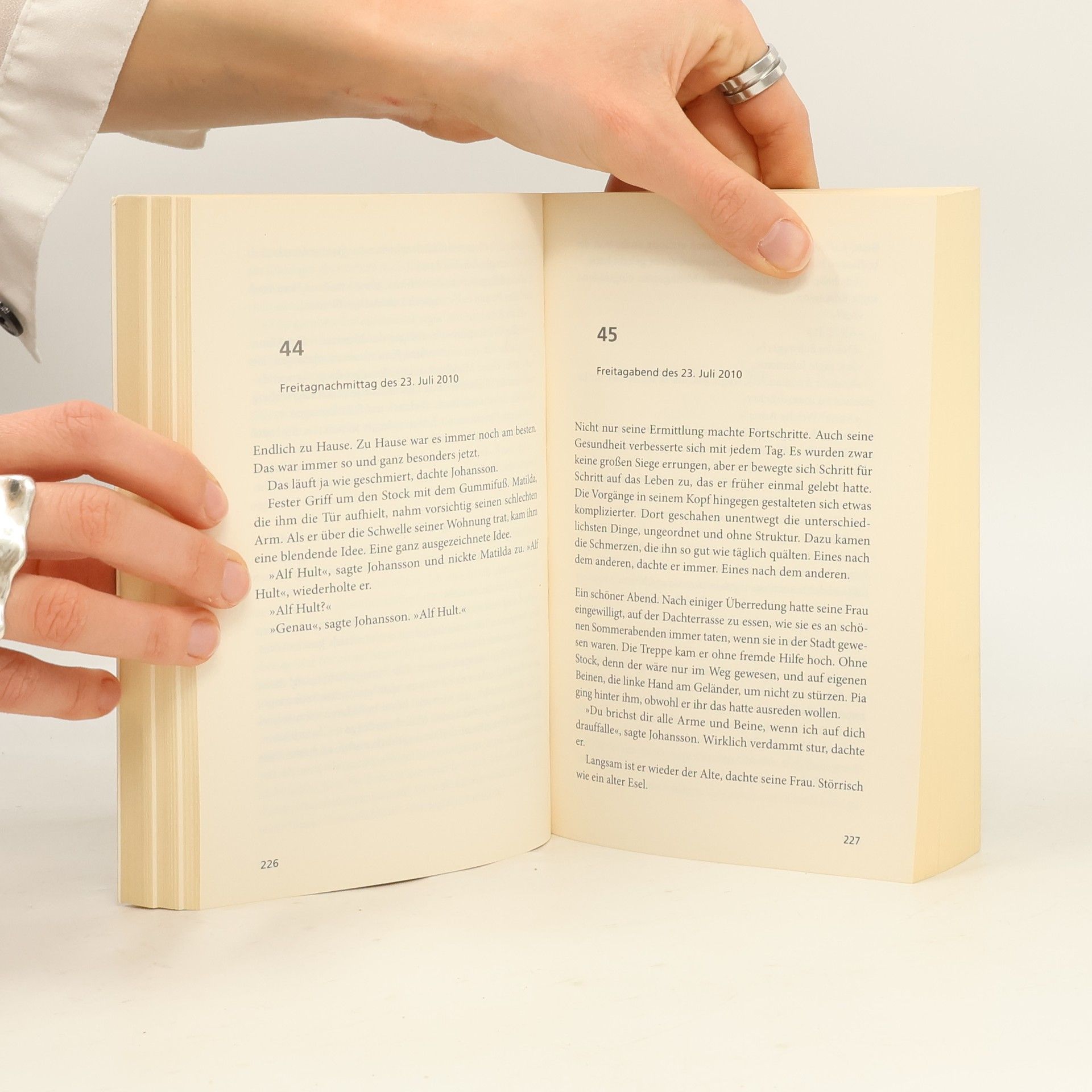 Stockholm, vor einer Würstchenbude: der pensionierte Lars Martin Johansson, legendärer Mordermittler und bei seinen ehemaligen Kollegen als der Mann bekannt, der um die Ecke denken kann, erleidet einen Schlaganfall. Gerade noch rechtzeitig wird er in ein Krankenhaus eingeliefert. Als er dort drei Tage später wieder aus dem Koma erwacht, rechtsseitig gelähmt, steht eines fest: von Johansson, wie man ihn einst kannte, ist nicht mehr viel übrig geblieben. Seine Lebensgeister werden erst wieder geweckt, als ihm seine behandelnde Ärztin von einem brutalen Mord an einem kleinen Mädchen erzählt, der 25 Jahre zurückliegt und nie aufgeklärt wurde. Vom Krankenbett aus beginnt Johansson mit den Ermittlungen. Er will Gerechtigkeit, und er ahnt, dass dies womöglich sein letzter Fall sein wird ...