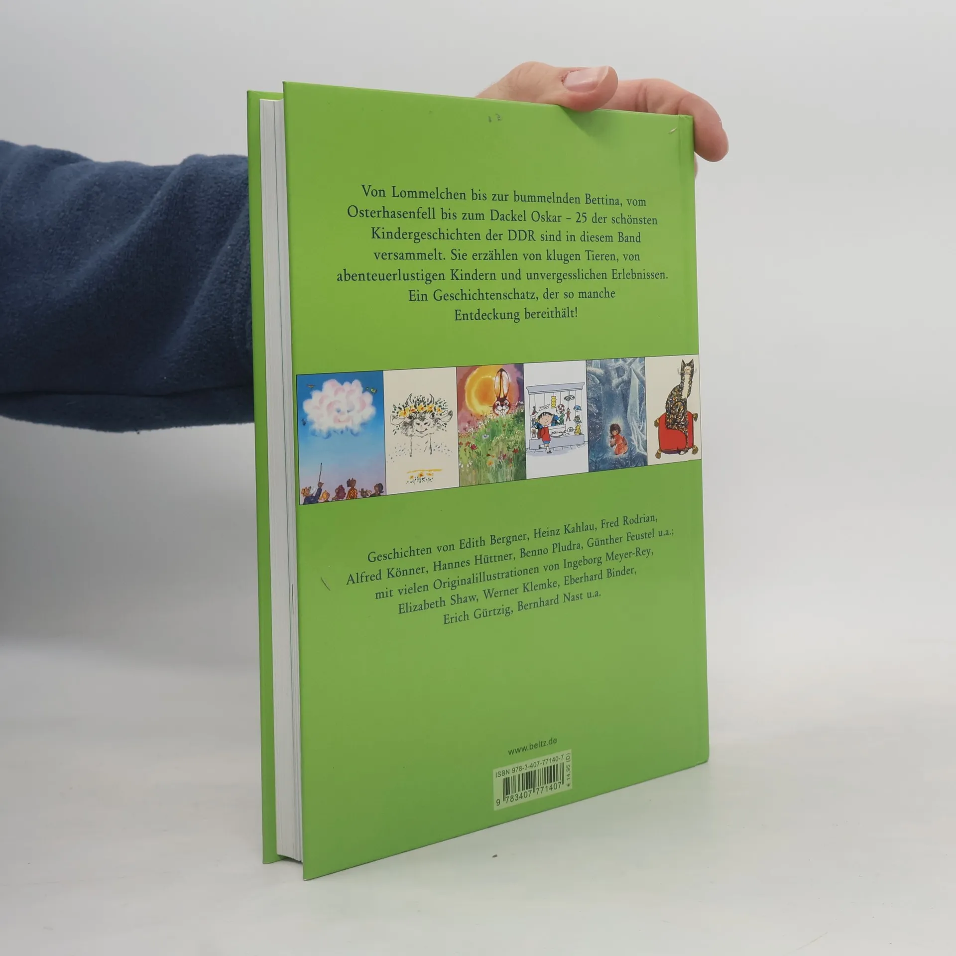 Bekannte und weniger bekannte Autoren und Illustratoren der DDR erzählen große Geschichten für Jung und Alt. 23 der beliebtesten Geschichten unvergessener Kinderbuchkünstler wie die Geschichte vom Stier Ferdinand, der so gern in den Blumen sitzt. Oder von Bettina, die auf dem Weg nach Hause die Zeit vergisst. Oder die Geschichte von Tatü und den drei Cäcilien ... Dieses Buch enthält so manchen Bilderbuchschatz, der seit Jahrzehnten nicht lieferbar gewesen ist. Geschichten von Alfred Könner, Ingeborg und Günther Feustel, Fred Rodrian, Isolde Stark, Elizabeth Shaw, Friedrich Wolf, Heinz Kahlau. Mit den Originalillustrationen von Ingeborg Meyer-Rey, Werner Klemke, Eberhard Binder, Erich Gürtzig, Konrad Golz, Bernhard Nast und vielen mehr. Enthält die Geschichten: Köpfchen, mein Köpfchen, Bettina bummelt, Lommelchen, Hans Fröhlich und das Vogelhaus, Wir haben keinen Löwen, Antonio und Großvater Autobus ... Als Einzeltitel nicht lieferbar: Der Stier Ferdinand, Kleine Ente namenlos, Ticki Mumm, Tatü und die drei Cäcilien, Das Eiszapfenherz, Das Osterhasenfell und viele mehr