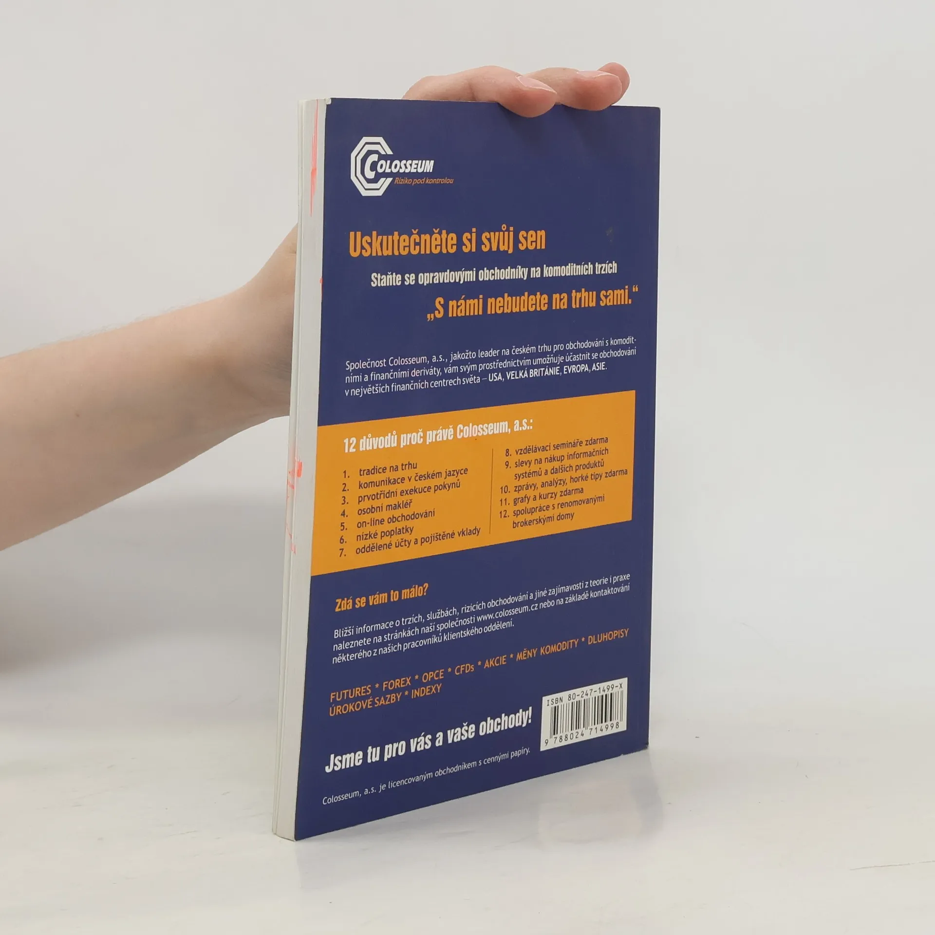 Tato jedinečná publikace, první svého druhu u nás, vás seznámí s praktickou stránkou komoditního obchodování, vysvětlí vám srozumitelnou formou jak a kde se s komoditami obchoduje, jak začít obchodovat s pomocí jednoduché technické analýzy, pomůže s výběrem správného brokera a samozřejmě poskytne i celou řadu důležitých lekcí, rad a tipů. Autoři jsou aktivní obchodníci na komoditních trzích a kniha odráží do značné míry jejich osobní praktické zkušenosti. Obchodování na finančních trzích nemusí být žádnou vědou a nevyžaduje zvláštní vzdělání, ani vysoké finanční požadavky. První vydání.