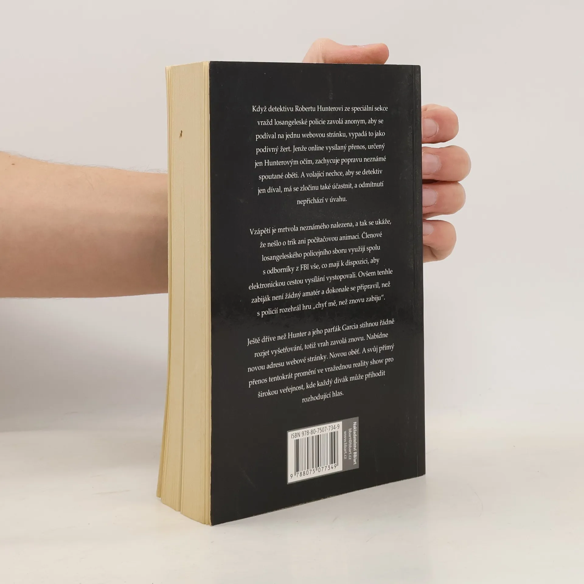 Když detektivu Robertu Hunterovi ze Speciální sekce vražd losangeleské policie zavolá anonym, aby se podíval na jednu webovou stránku, vypadá to jako podivný žert. Jenže online vysílaný přenos, určený jen Hunterovým očím, zachycuje popravu neznámé spoutané oběti. A volající nechce, aby se detektiv jen díval, má se zločinu také účastnit, a odmítnutí nepřichází v úvahu. Vzápětí je mrtvola neznámého nalezena, a tak se ukáže, že nešlo o trik ani počítačovou animaci. Členové losangeleského policejního sboru využijí spolu s odborníky z FBI vše, co mají k dispozici, aby elektronickou cestou vysílání vystopovali. Ovšem tenhle zabiják není žádný amatér a dokonale se připravil, než s policií rozehrál hru „chyť mě, než znovu zabiju“. Ještě dříve, než Hunter a jeho parťák Garcia stihnou řádně rozjet vyšetřování, totiž vrah zavolá znovu. Nabídne novou adresu webové stránky. Novou oběť. A svůj přímý přenos tentokrát promění ve vražednou reality show pro širokou veřejnost, kde každý divák může přihodit rozhodující hlas.