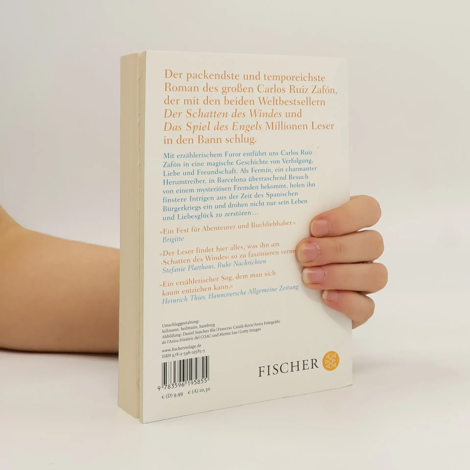 Der packendste und temporeichste Roman des großen Carlos Ruiz Zafón, der mit den beiden Weltbestsellern ›Der Schatten des Windes‹ und ›Das Spiel des Engels‹ Millionen Leser auf der ganzen Welt in den Bann schlug. Jäh wird das traumschöne Barcelona aus dem Schlummer gerissen und zum Schauplatz eines rasanten Abenteuers: Als Fermín, ein charmanter Herumtreiber, überraschend Besuch von einem mysteriösen Fremden bekommt, holen ihn finstere Intrigen aus der Zeit des Spanischen Bürgerkriegs ein. Sie bedrohen nicht nur sein Leben und Liebesglück, sondern schlingen sich bald auch um das Glück seiner Freunde … Spannender als je zuvor entführt uns Carlos Ruiz Zafón mit erzählerischem Furor in eine magische Geschichte von Verfolgung, Liebe und Freundschaft.