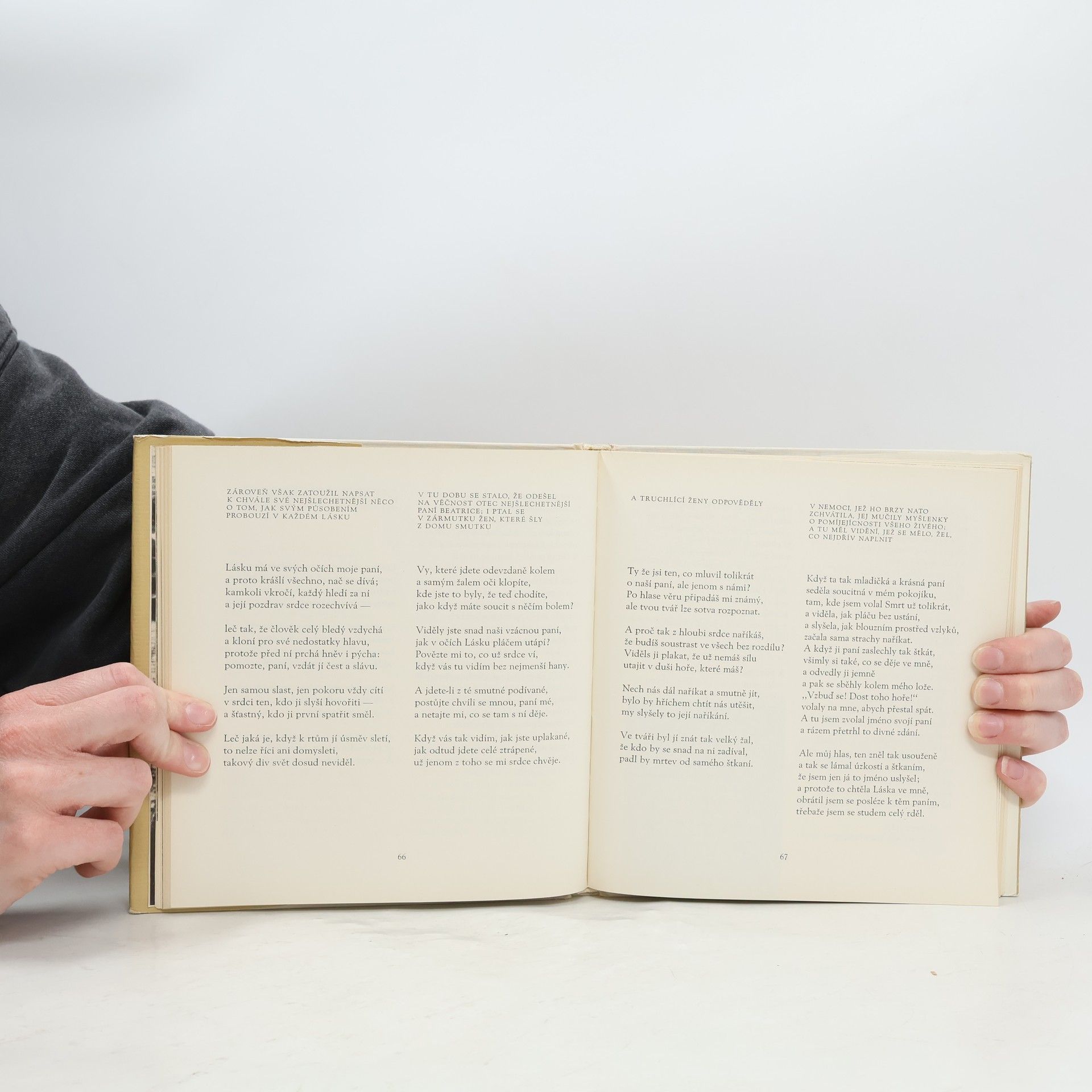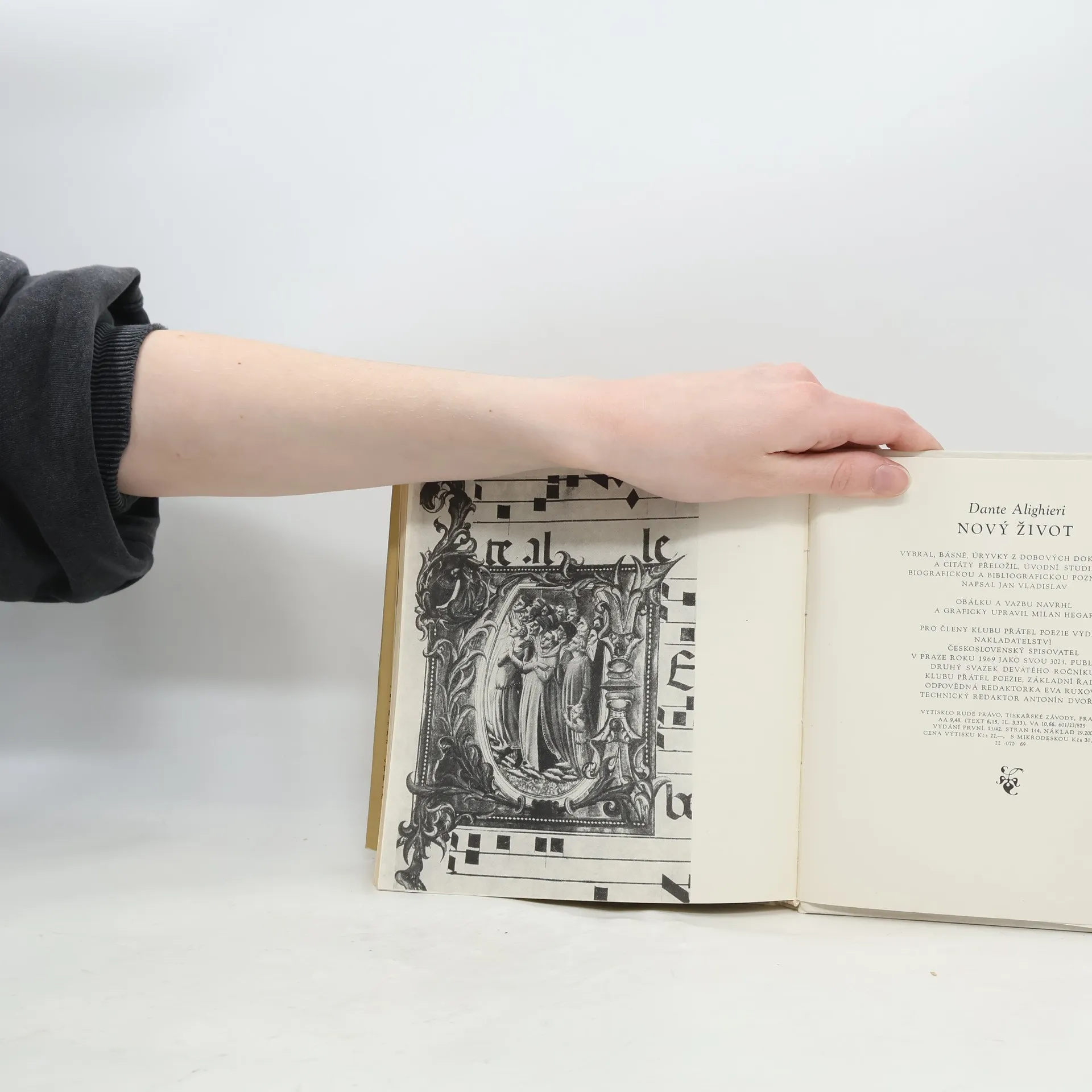 Průřez básníkovým lyrickým dílem od raných veršů až po básně z exilu, doplněný pasážemi z Božské komedie, dobovými portréty Danta z pera současníků a verši jeho přátel. Básně, úryvky z dobových dokumentů a citáty vybral, z italštiny přeložil, úvodní studii, biografickou a bibliografickou poznámku napsal Jan Vladislav. Část nákladu vydána s mikrodeskou.