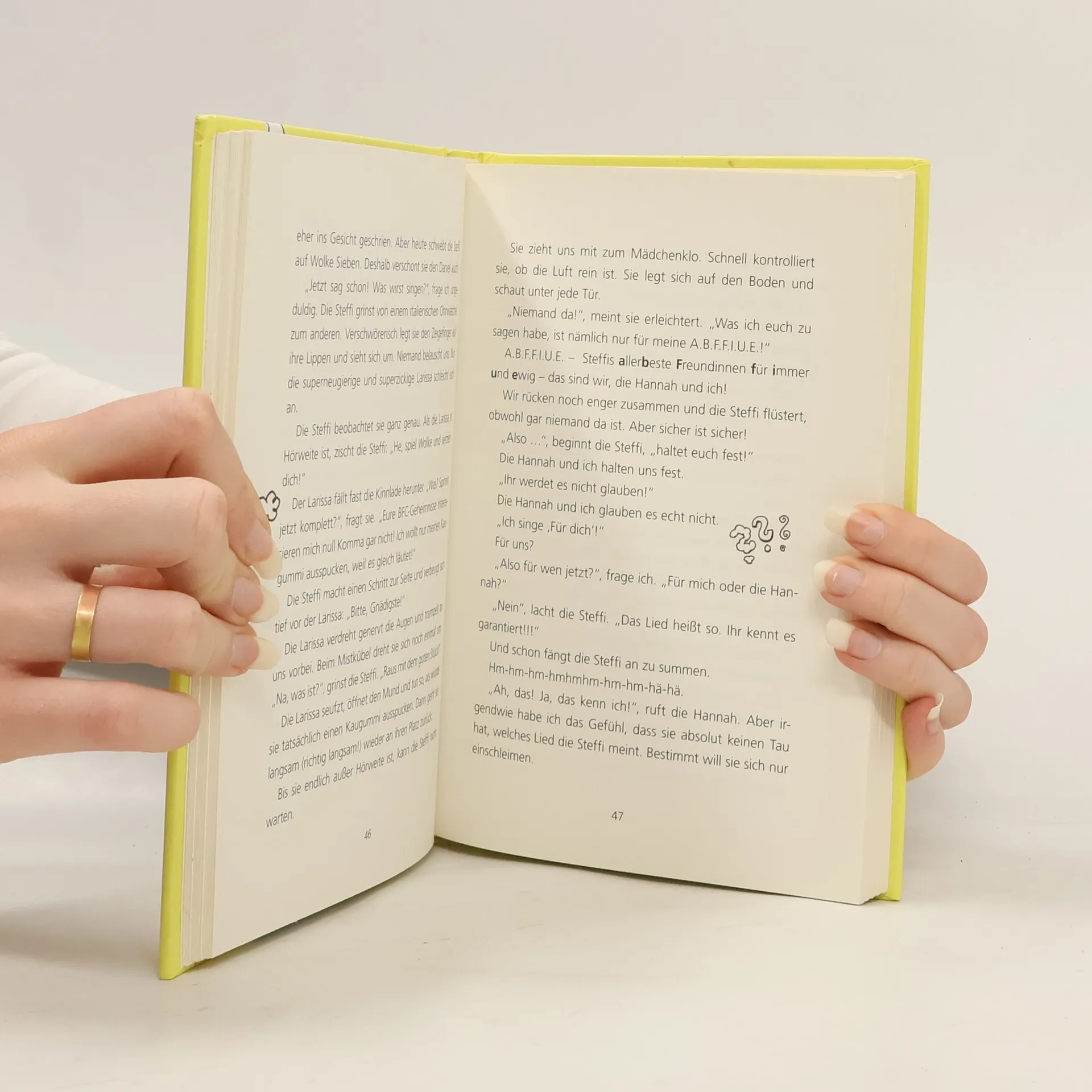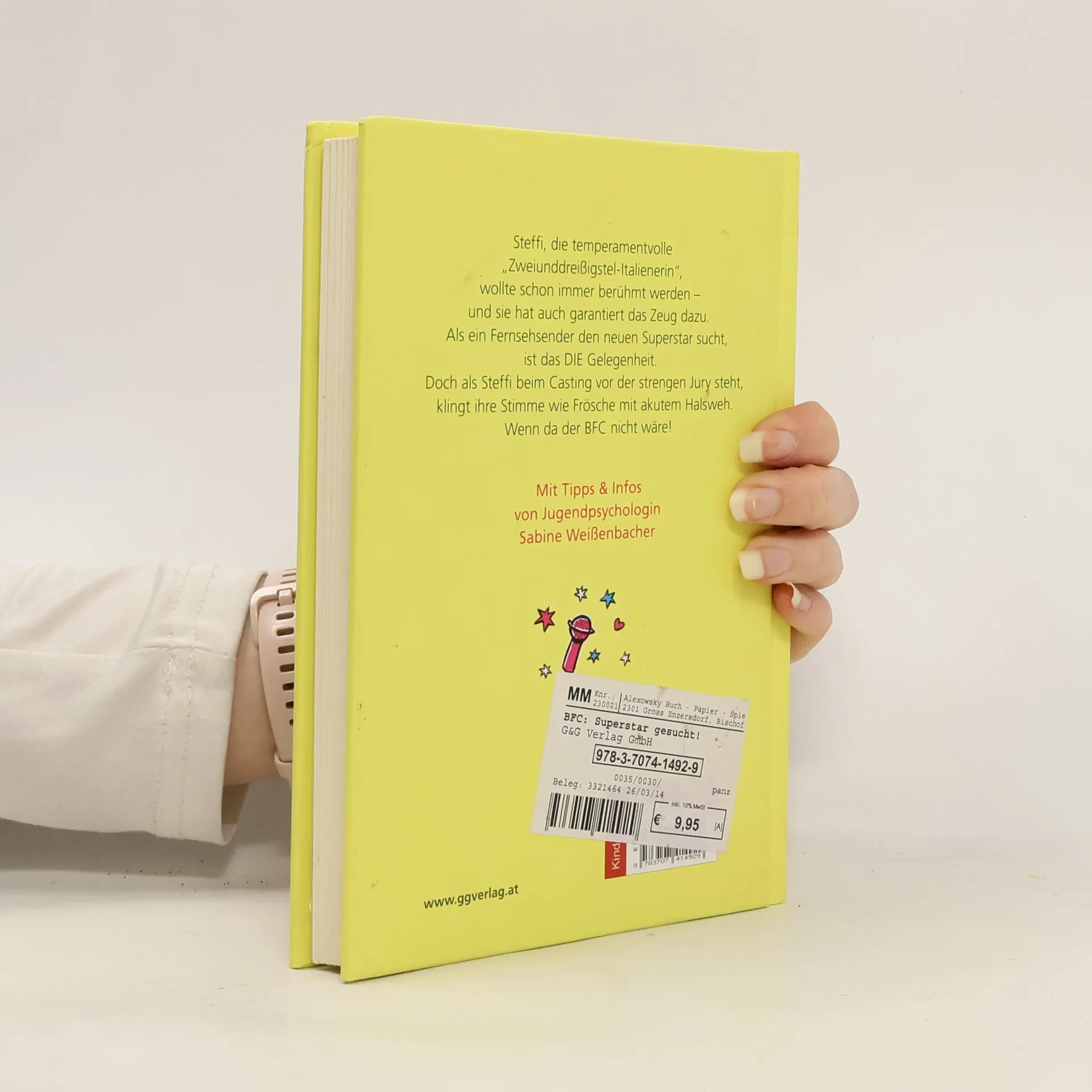 Steffi, die temperamentvolle „Zweiunddreißigstel-Italienerin“, wollte schon immer berühmt werden - und sie hat auch garantiert das Zeug dazu. Als ein Fernsehsender den neuen Superstar sucht, ist das DIE Gelegenheit. Doch als Steffi beim Casting vor der strengen Jury steht, klingt ihre Stimme wie Frösche mit akutem Halsweh. Wenn da der BFC nicht wäre! >) ab 9 Jahren >) spritzige Texte >) Alltagsprobleme und -situationen von Mädchen im Alter von 9-12 >) viel Platz für Identifikation >) Castingshows kritisch beleuchtet >) Thema Nervosität - und was man dagegen tun kann >) Thema Selbstreflexion