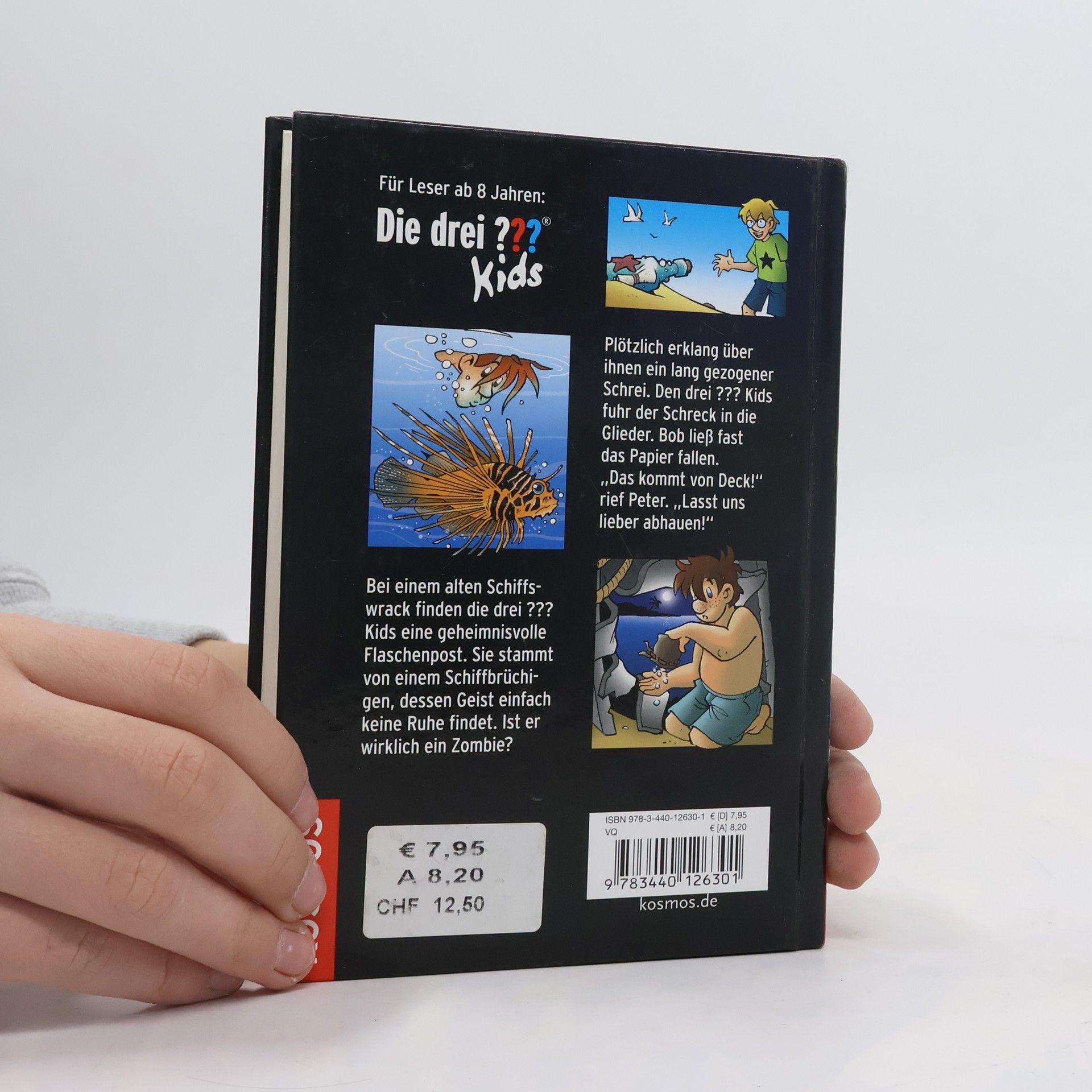 Bei einem alten Schiffswrack finden “Die drei ??? Kids“ eine geheimnisvolle Flaschenpost. Sie stammt von einem Schiffbrüchigen, dessen Geist anscheinend keine Ruhe findet. Ist er wirklich ein Zombie? Als Justus, Peter und Bob beschließen dem Spuk ein Ende zu machen, schlittern sie mitten in ein gruseliges Abenteuer.